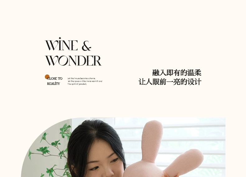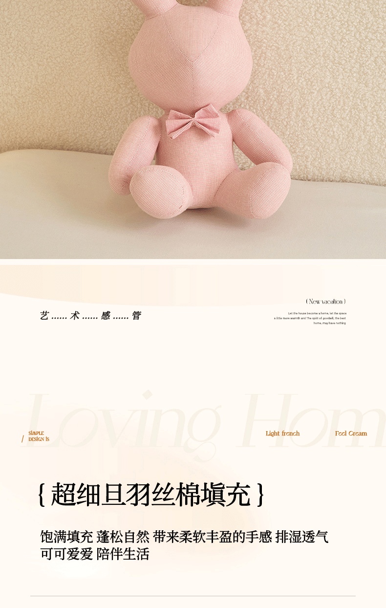 三沁家居 2025新款全棉色织水洗玩偶米萌兔系列 萌粉 40x26x20cm/只