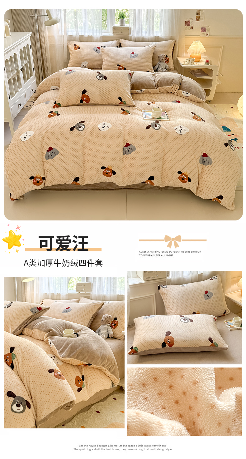 当前位置: 91家纺网 > 商品网购 > 床品套件 > 四件套 > 牛奶绒四件套 > 卡罗兰 2025新款200克牛奶绒小清新印花四件套 可爱汪