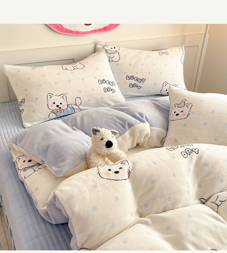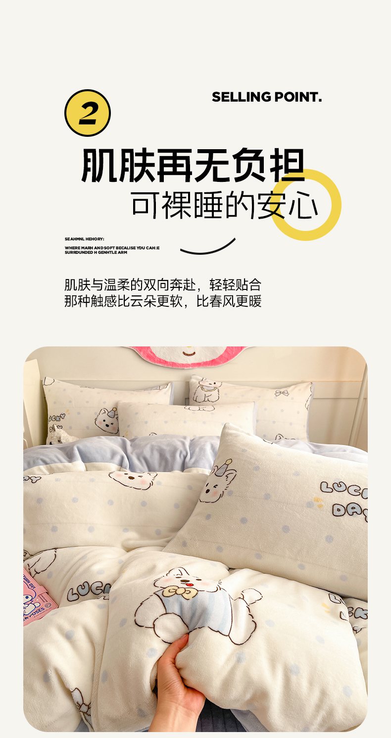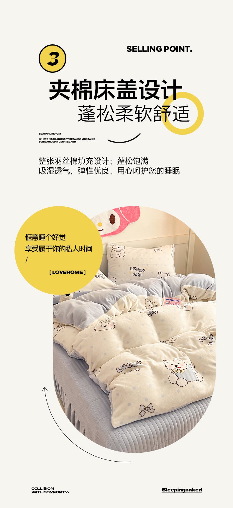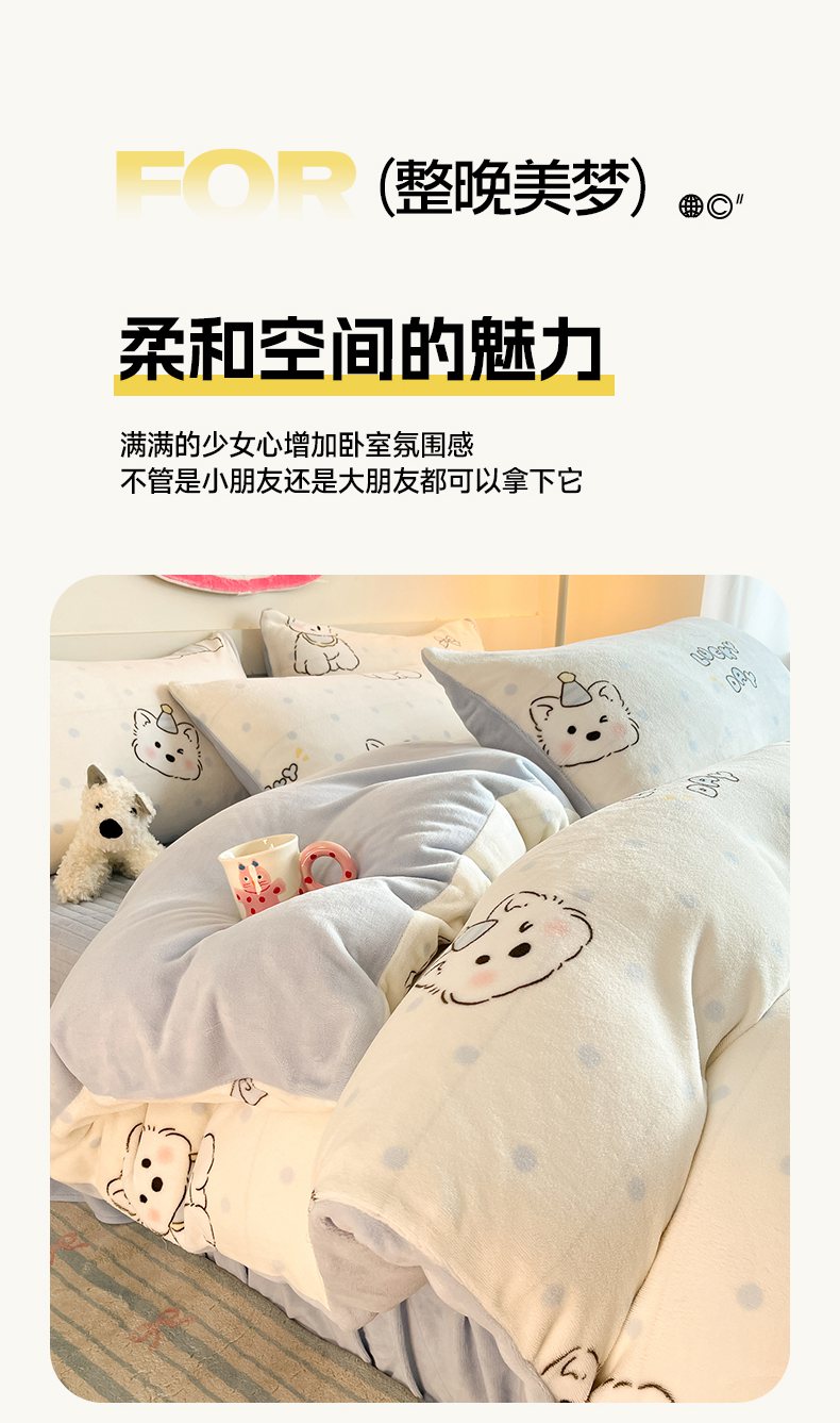 当前位置: 91家纺网 > 商品网购 > 床品套件 > 四件套 > 其它四件套 > 摩妮卡 2025新款牛奶绒印花夹棉床盖印花四件套 小狗lucky