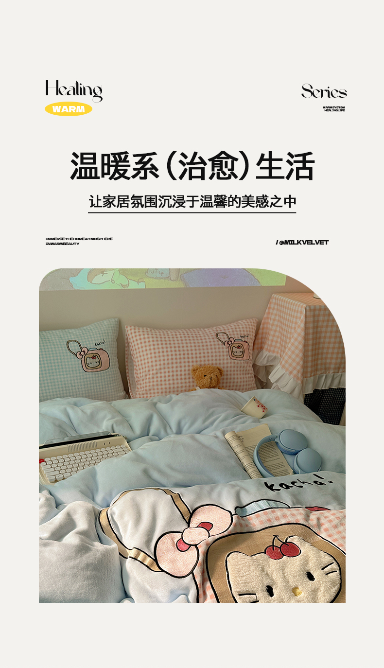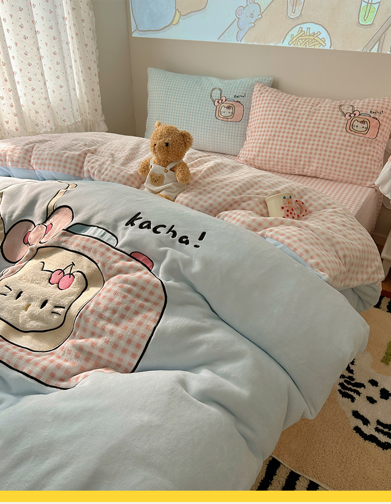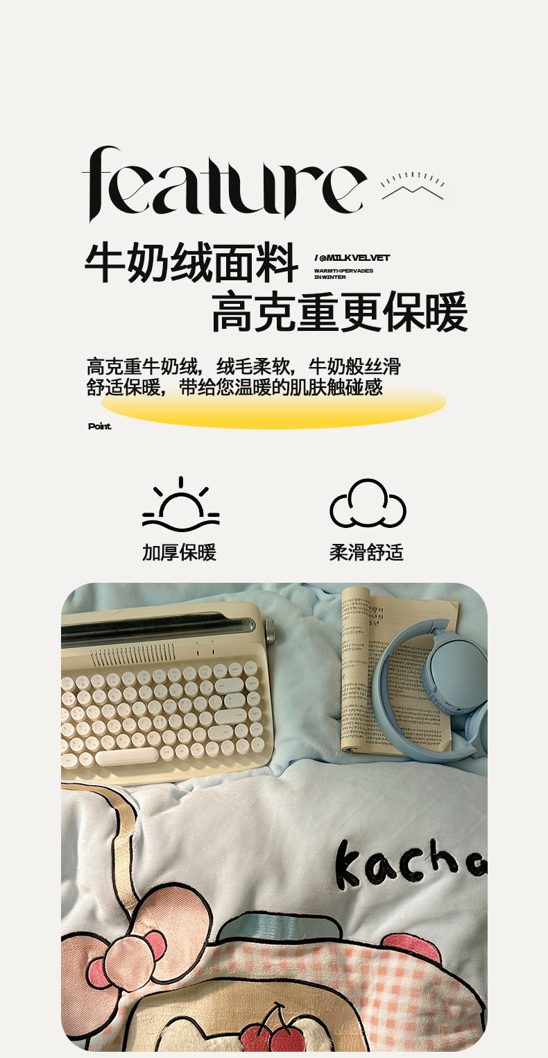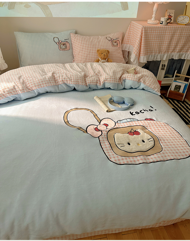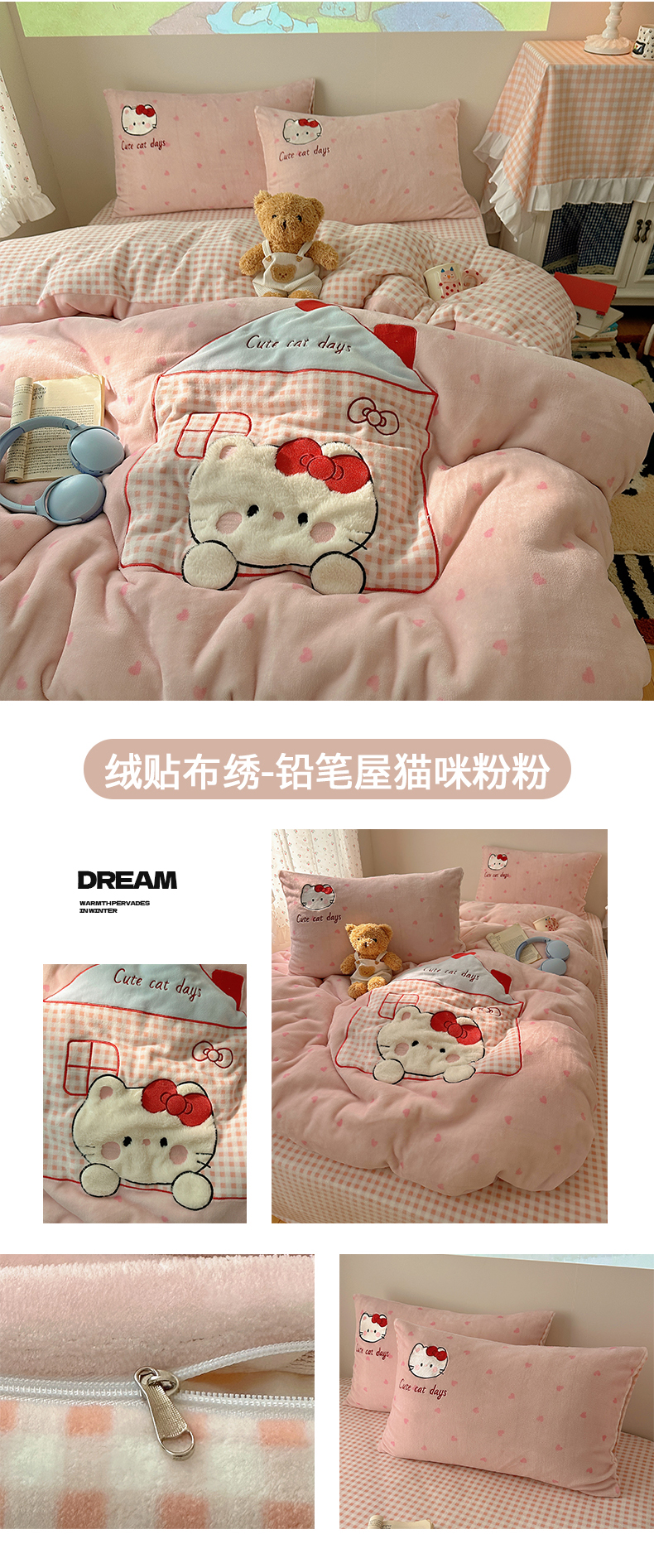 当前位置: 91家纺网 > 商品网购 > 床品套件 > 四件套 > 牛奶绒四件套 > 桃子家居 2025新款A类兔毛贴布绣刺绣牛奶绒四件套 绒贴布绣-蓝粉相机喵喵