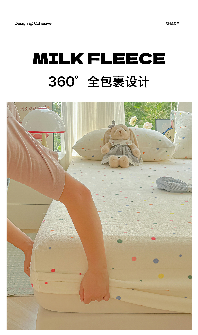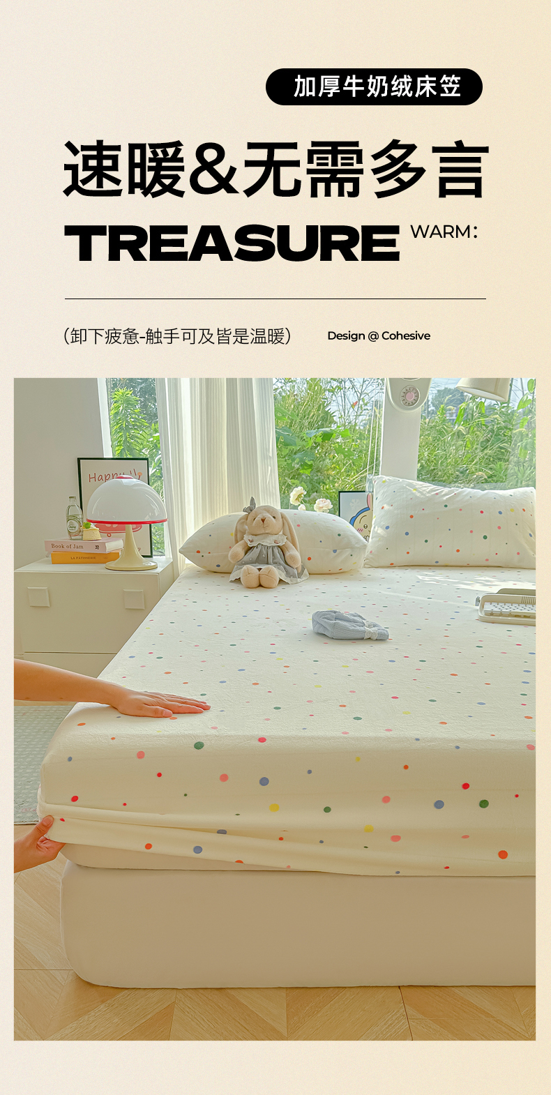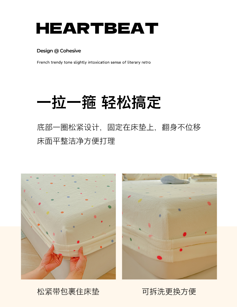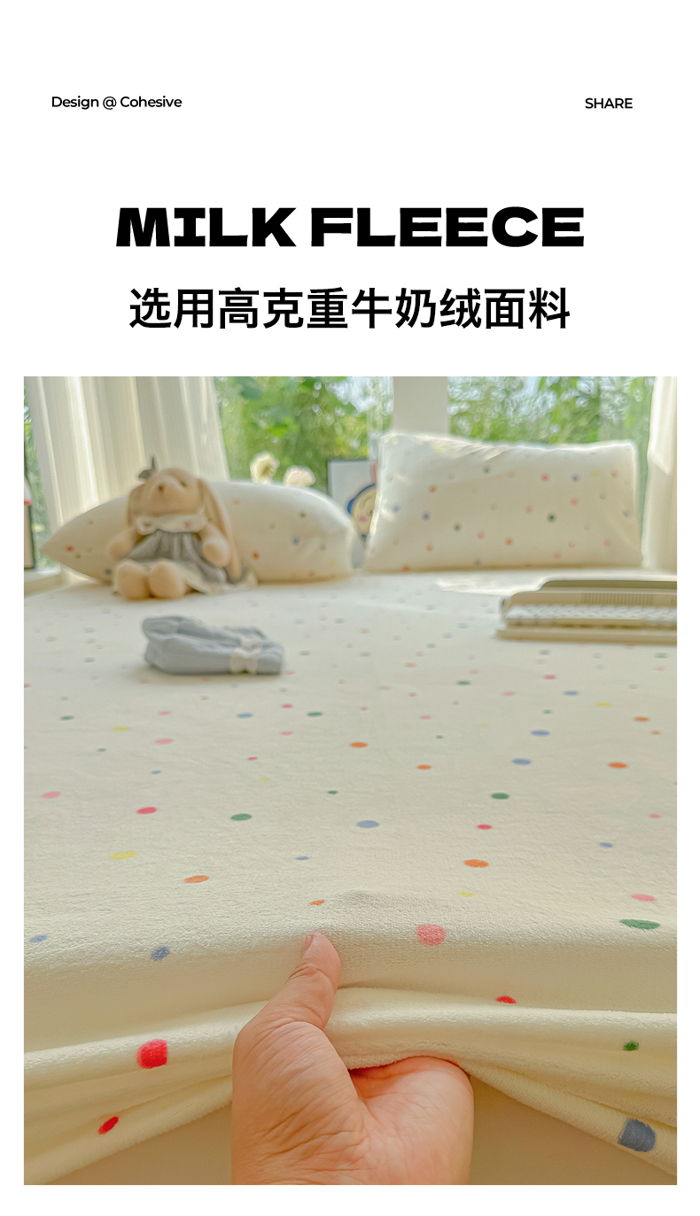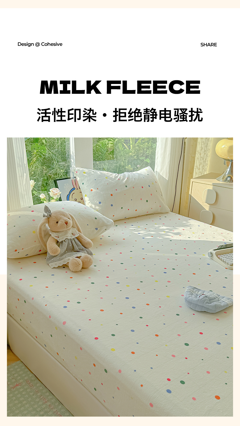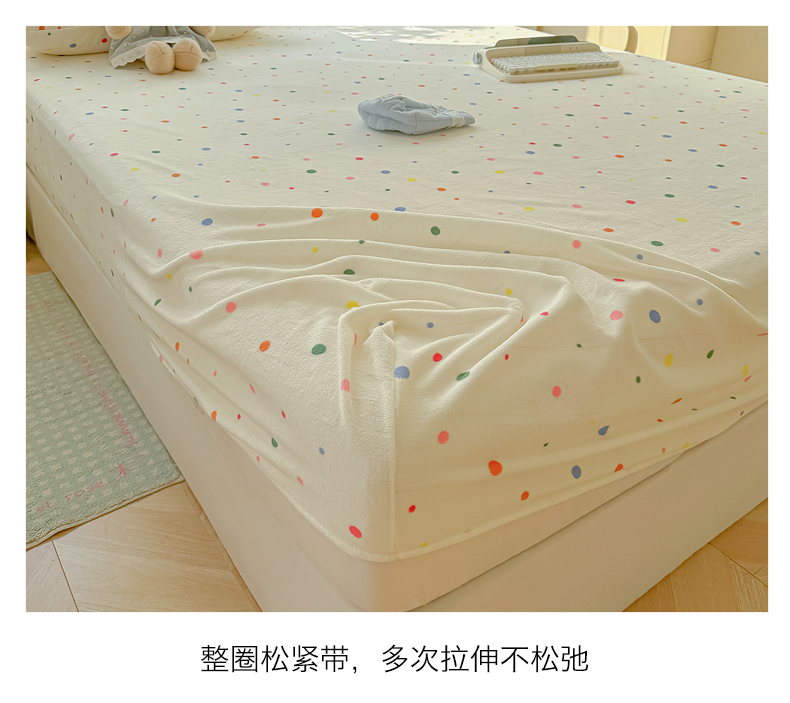 • 91家纺网 家纺一手货源 找家纺 沐芷 2025 加厚高克重牛奶绒床笠单件/床笠三件套  床笠款床罩床垫保护套罩 【绒】彩色波点
