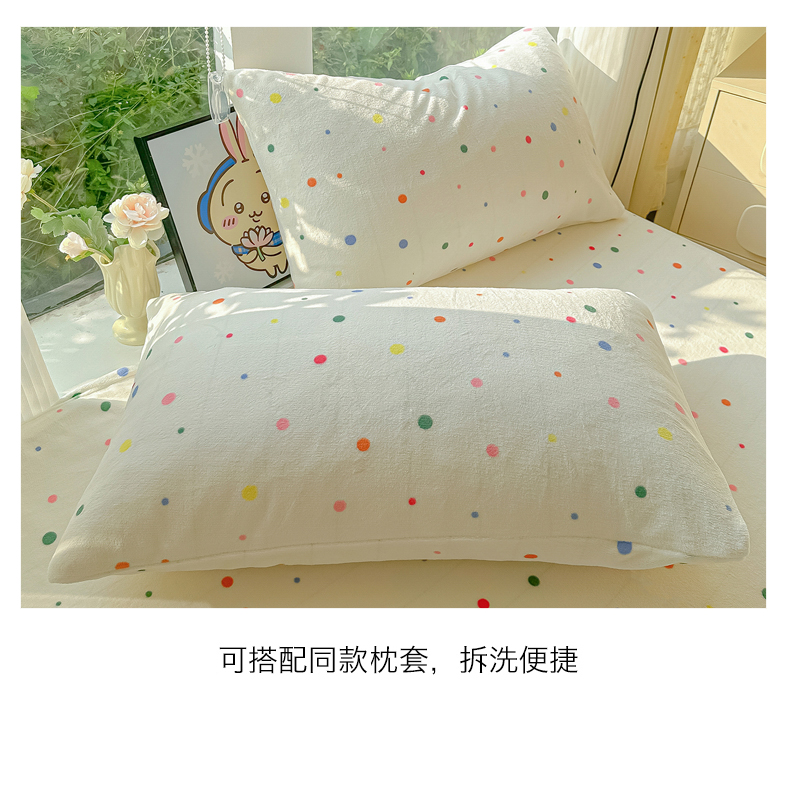沐芷 2025 加厚高克重牛奶绒床笠单件/床笠三件套 床笠款床罩床垫保护套罩 【绒】彩色波点