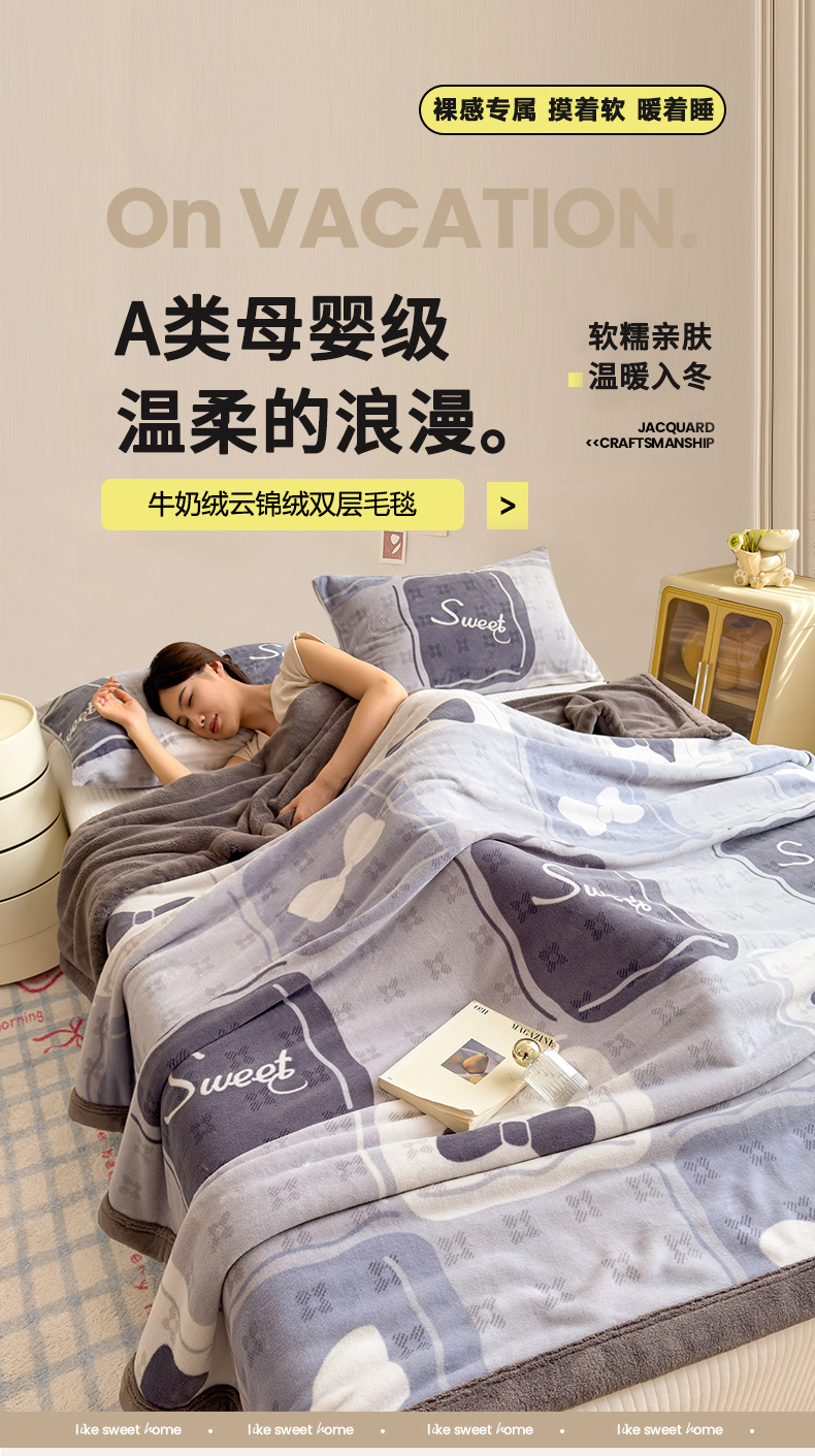 当前位置: 91家纺网 > 商品网购 > 毛毯休闲毯绒毯 > 毛毯 > 慕木家纺 2025新款高克重印花牛奶绒云锦绒双层毛毯毛毯毯子(可供跨境提供买家秀) 双层毛毯-芊芊情-灰
