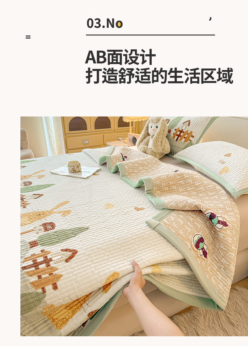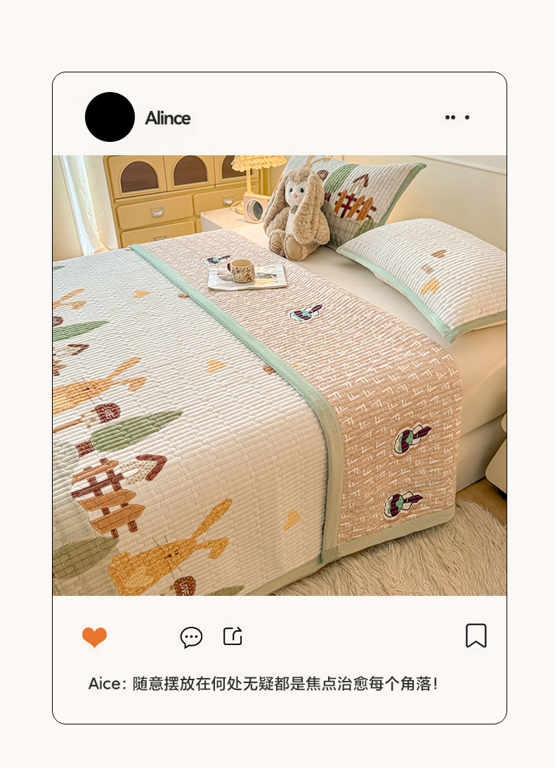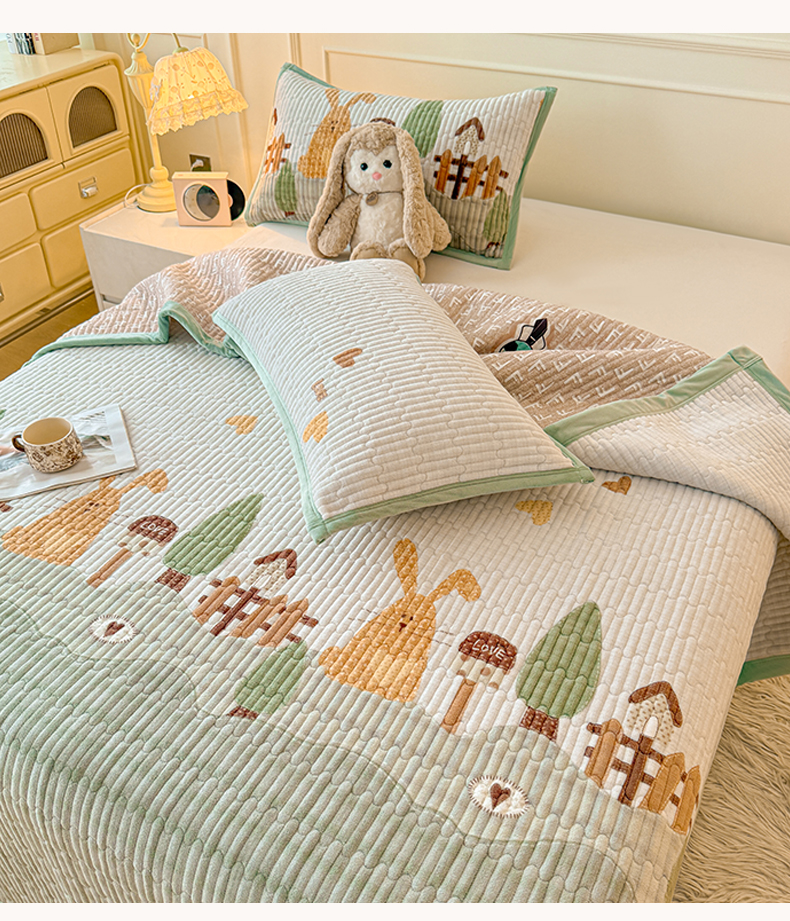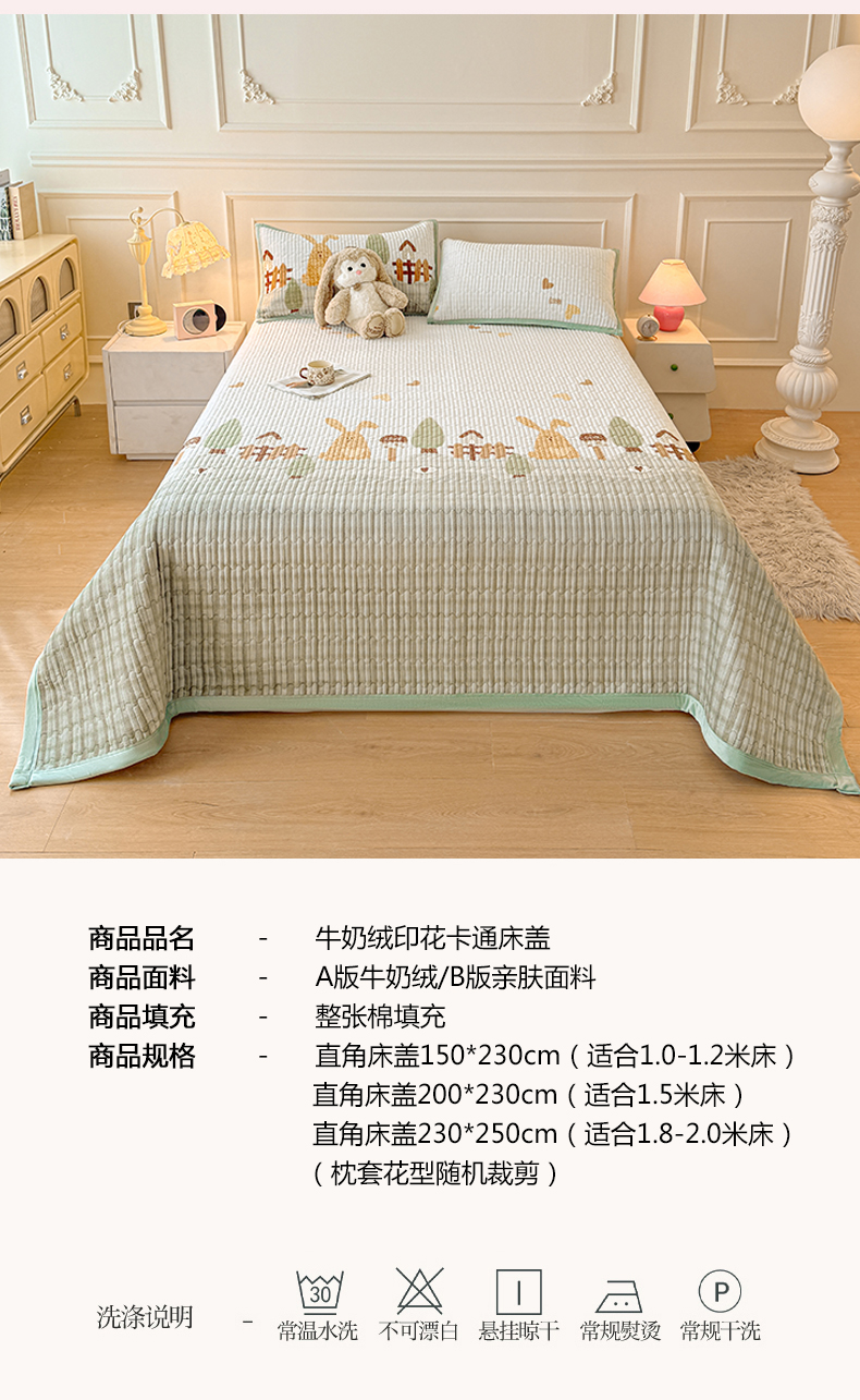商品名称:慕木家纺 2025新款高克重牛奶绒小清新印花卡通夹棉单床盖床盖单件(提供买家秀) 牛奶绒床盖-萝卜兔