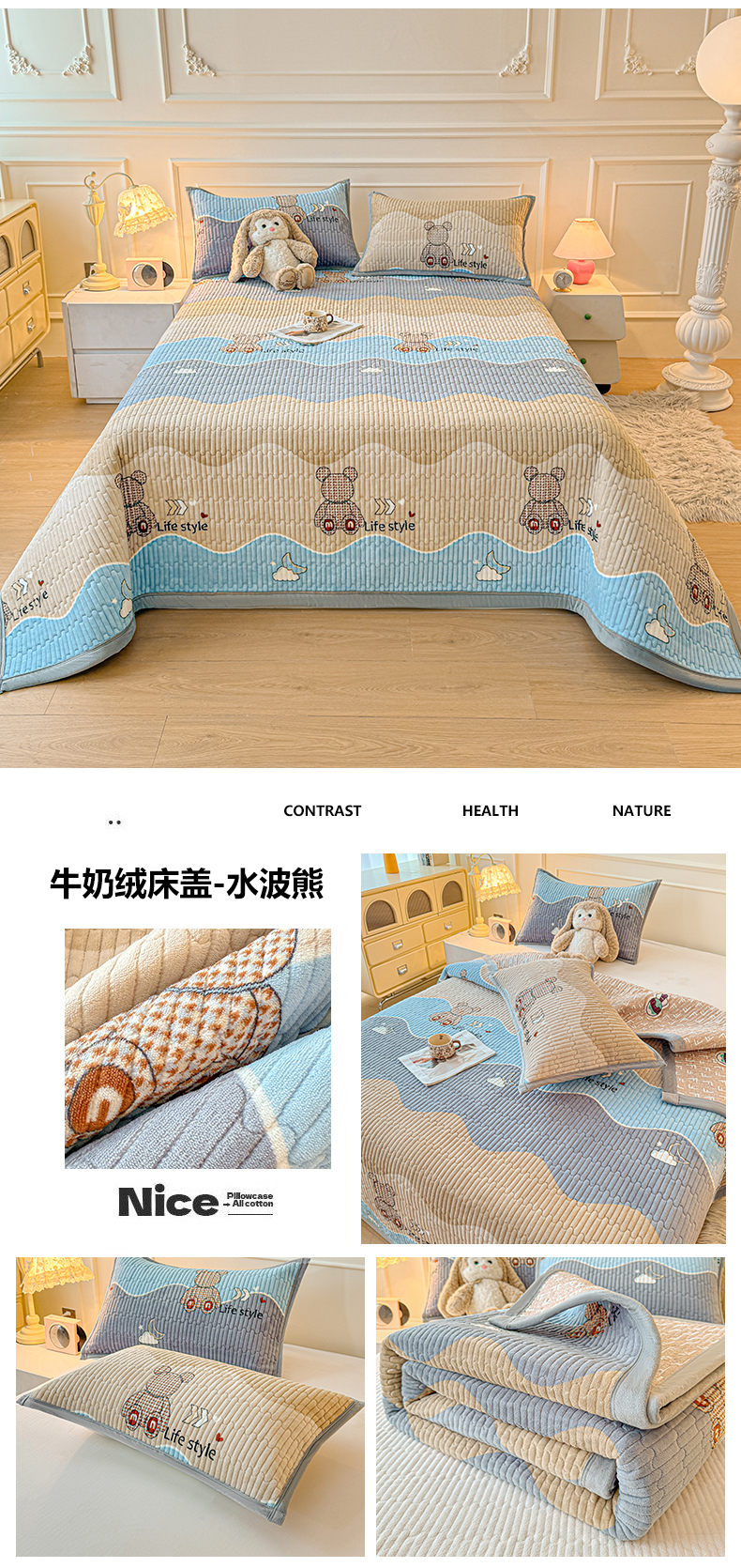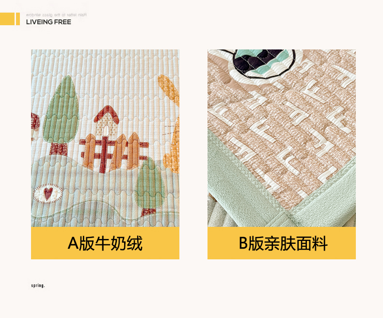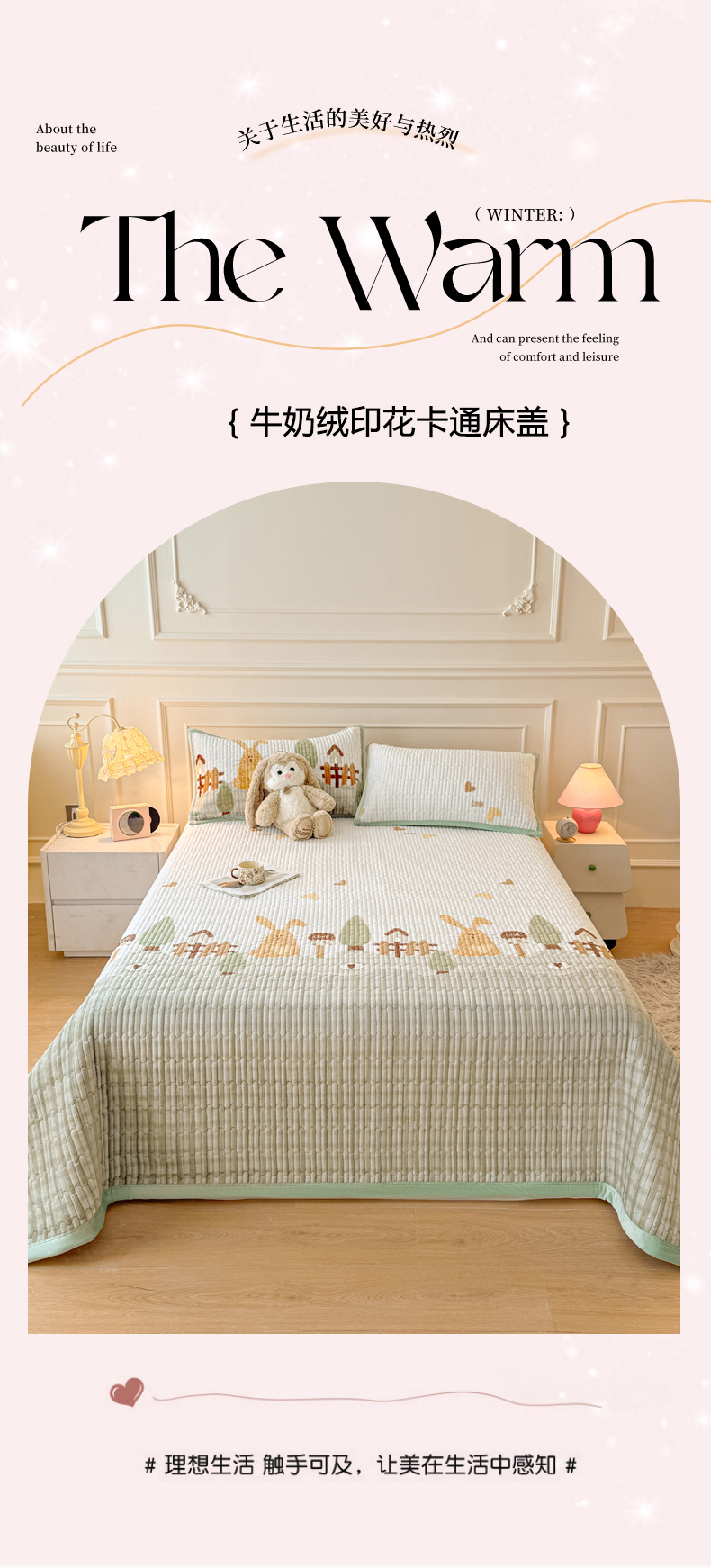 商品名称:慕木家纺 2025新款高克重牛奶绒小清新印花卡通夹棉单床盖床盖单件(提供买家秀) 牛奶绒床盖-萝卜兔