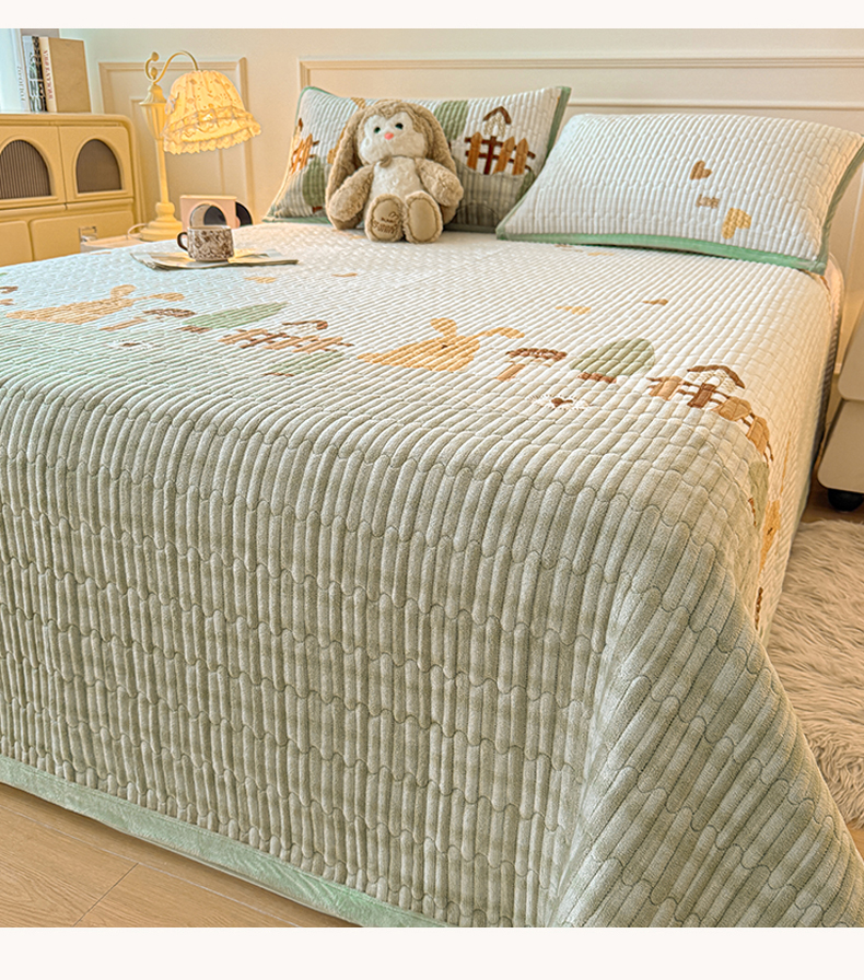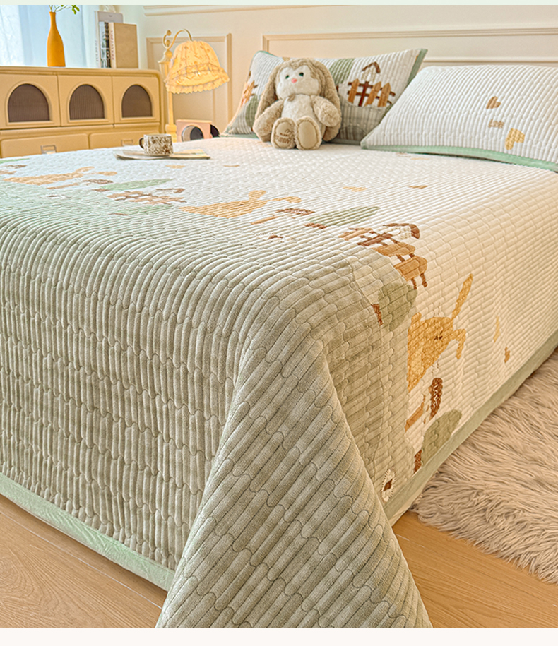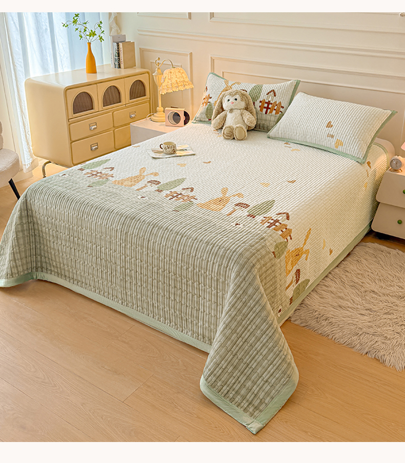 慕木家纺 2025新款高克重牛奶绒小清新印花卡通夹棉单床盖床盖单件(提供买家秀) 牛奶绒床盖-萝卜兔