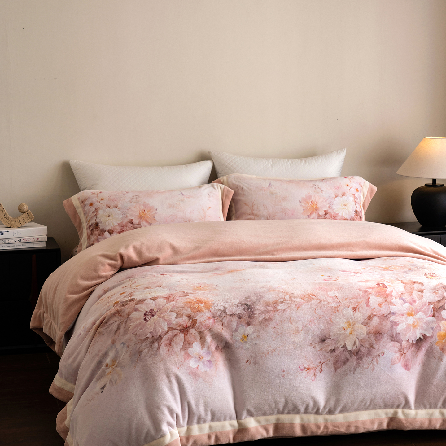 (总)佳汐蓝家纺 2025春夏新款贡缎长绒棉蝶梦花缘四件套,蝶梦花缘·粉,蝶梦花缘·紫