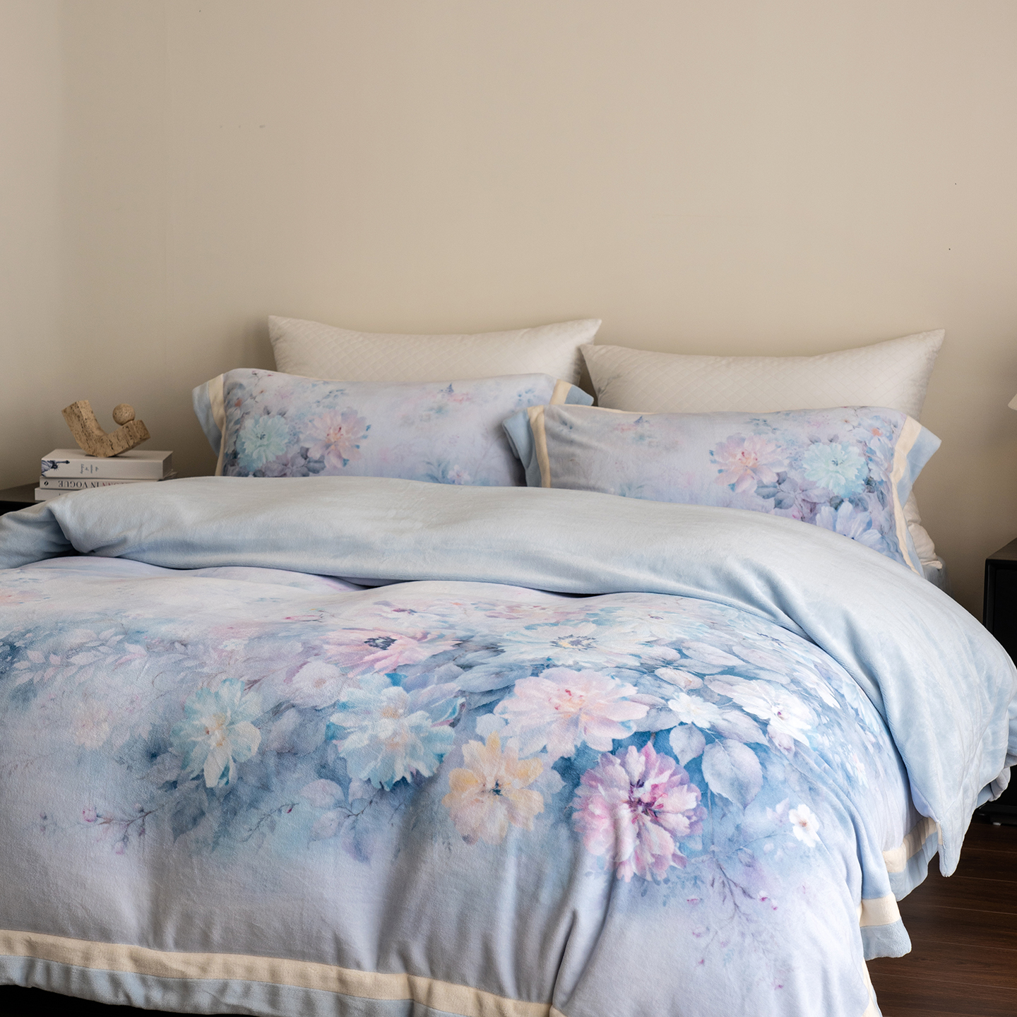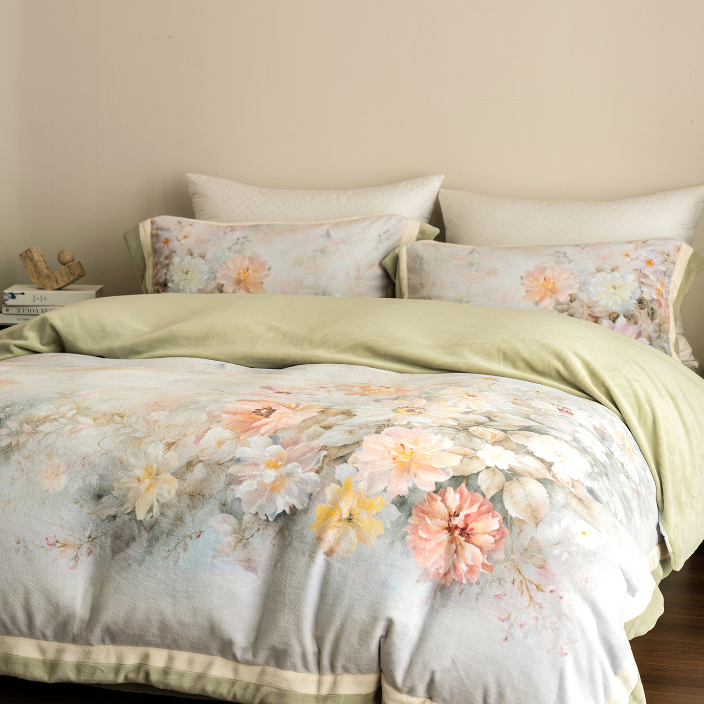 佳汐蓝家纺 2025新款全消光牛奶绒数码印花四件套-沁园春系列 沁园春-绿