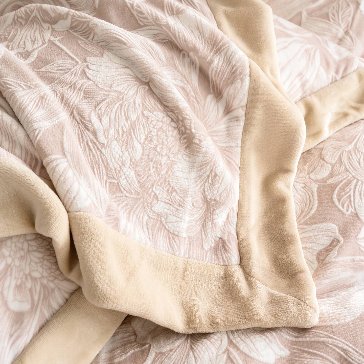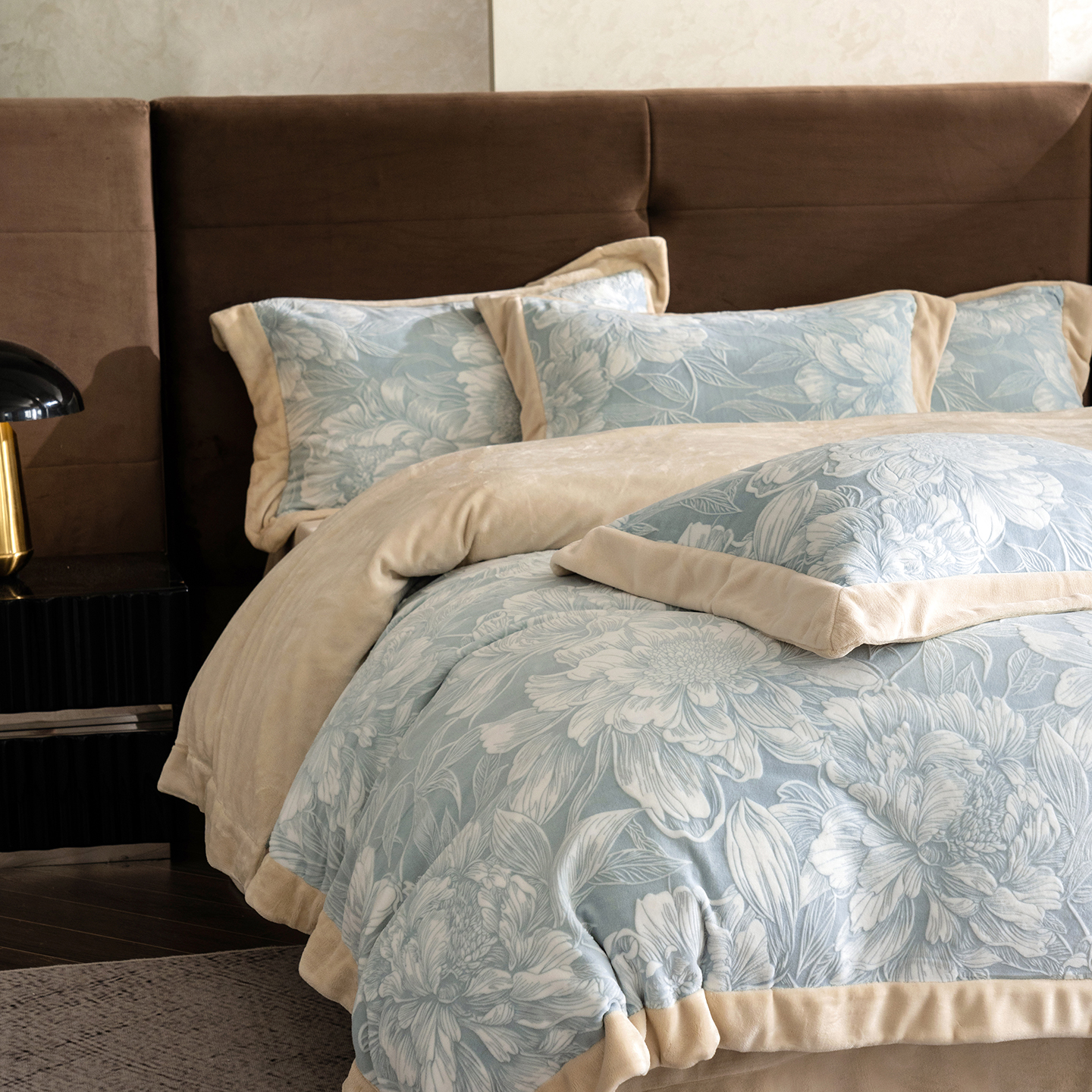 佳汐蓝家纺 2025新款雕花绒四件套毯子-芳华系列 芳华-豆沙