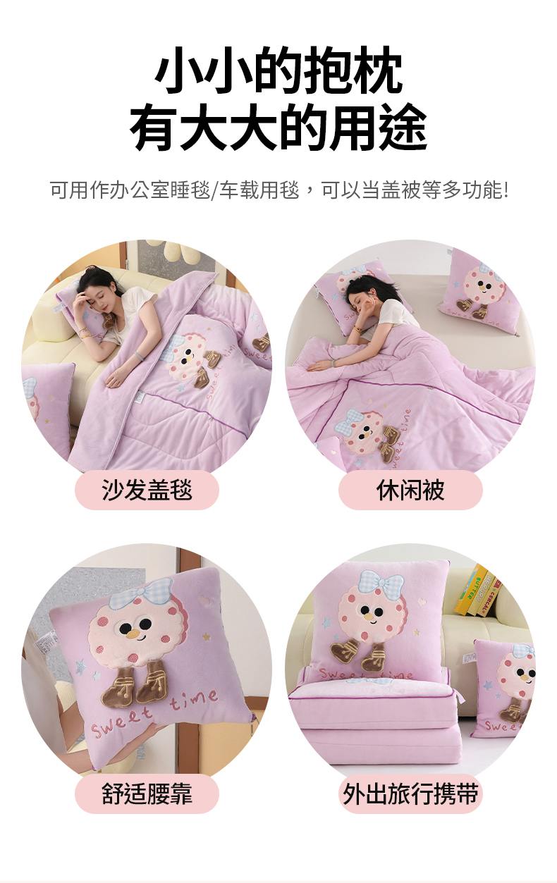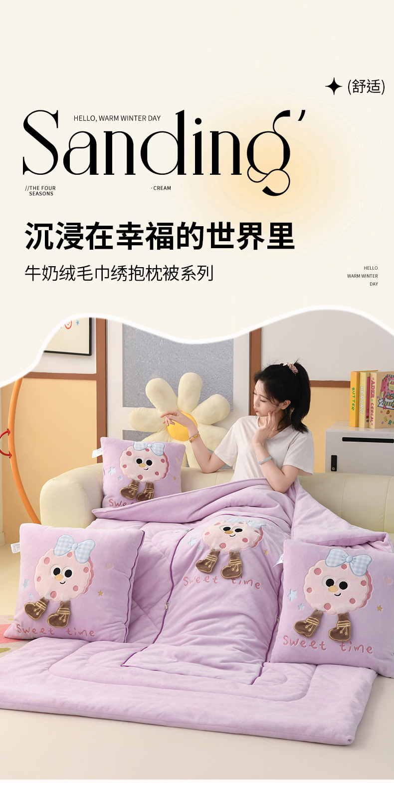 (总)翰轩家居 2025新款牛奶绒抱枕被泡芙公主系列,泡芙公主-粉,泡芙公主-咖,泡芙公主-蓝,泡芙公主-紫