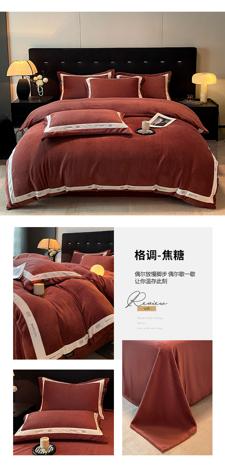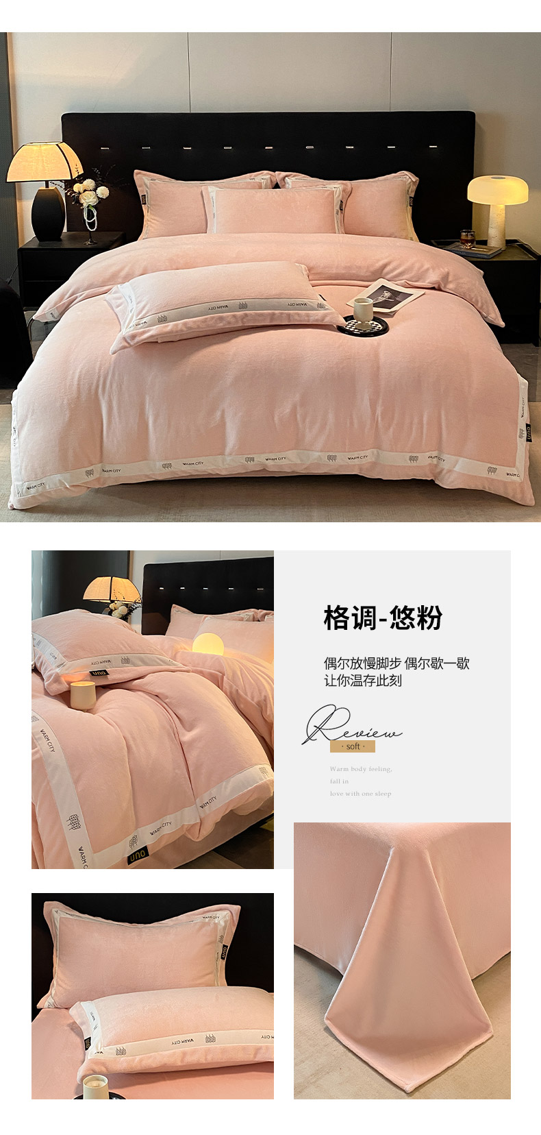 商品名称:(总)绒城 2025新款简约织带款牛奶绒四件套-格调