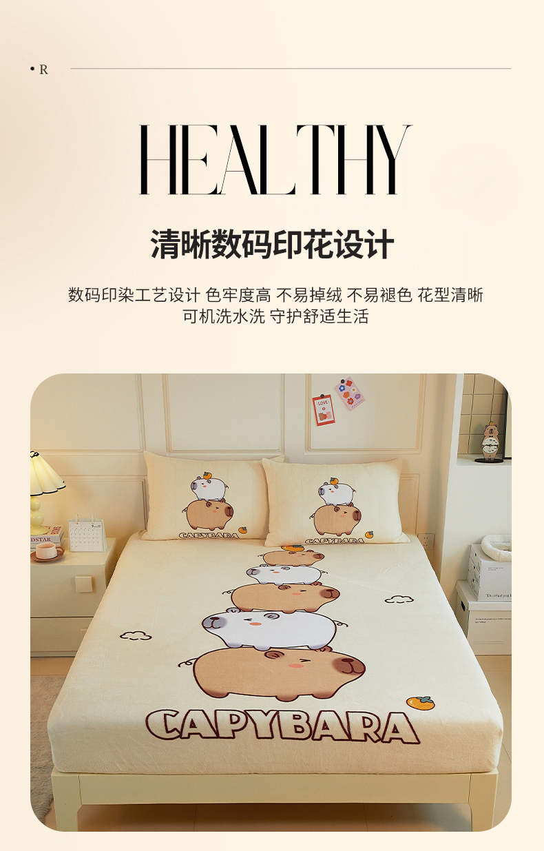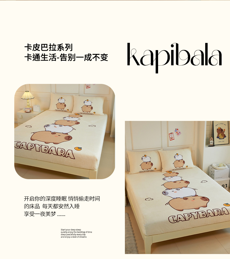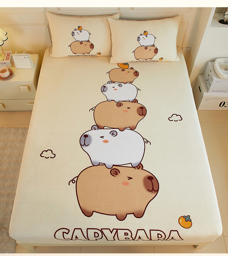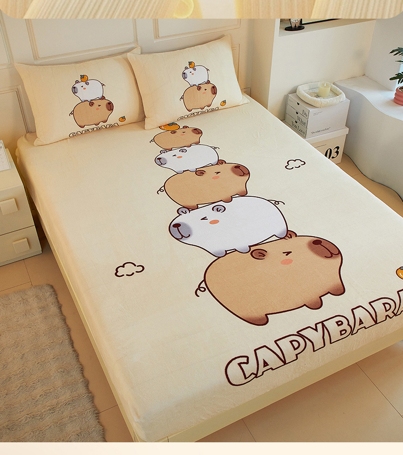 商品名称:蘭菲家纺 2025新款保暖舒适卡皮巴拉牛奶绒系列单品床笠 沉浸式