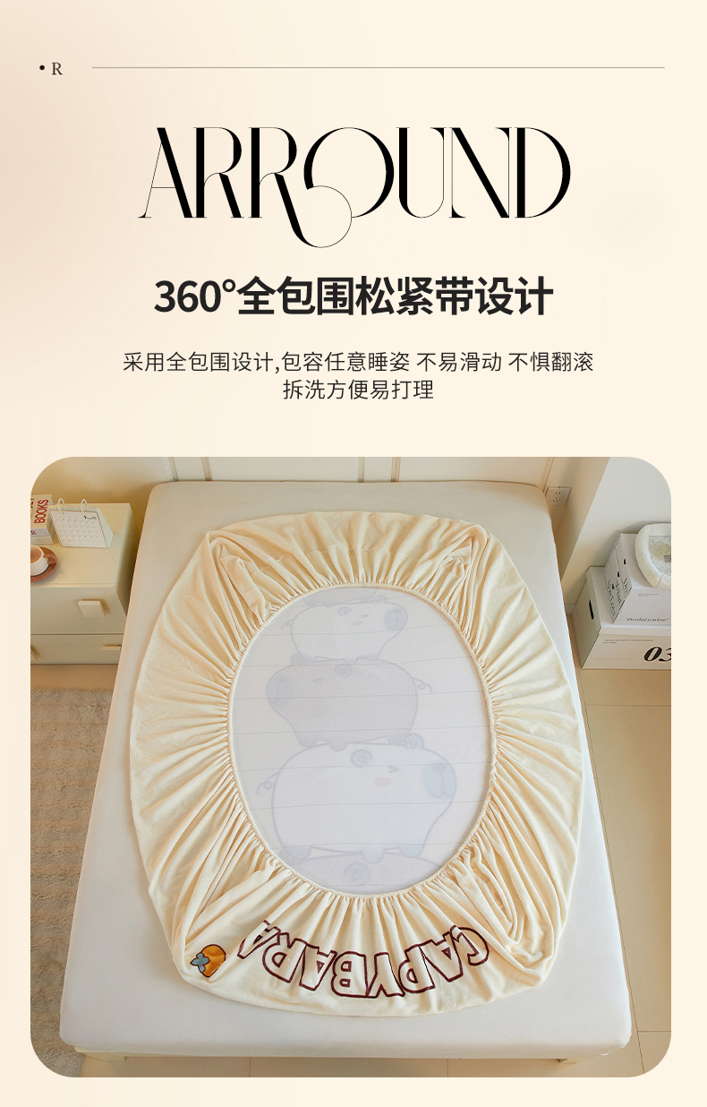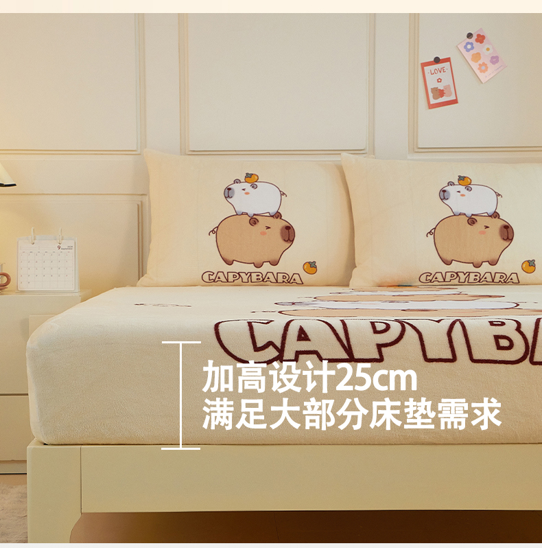 蘭菲家纺 2025新款保暖舒适卡皮巴拉牛奶绒系列单品床笠 沉浸式