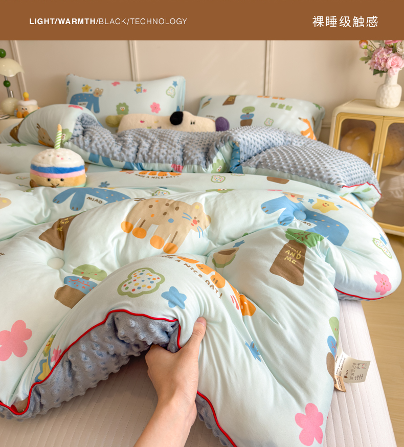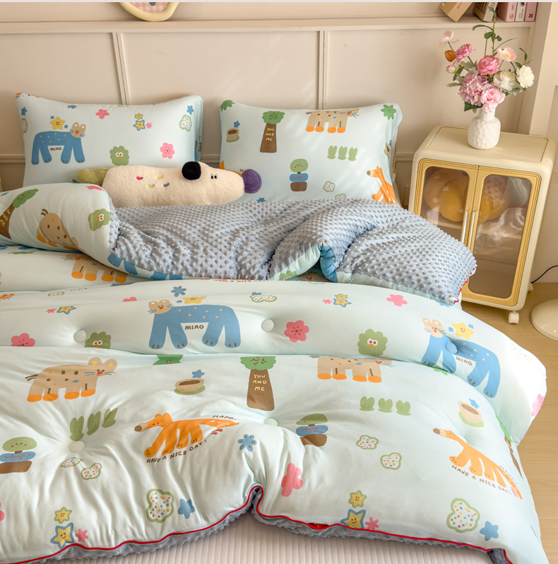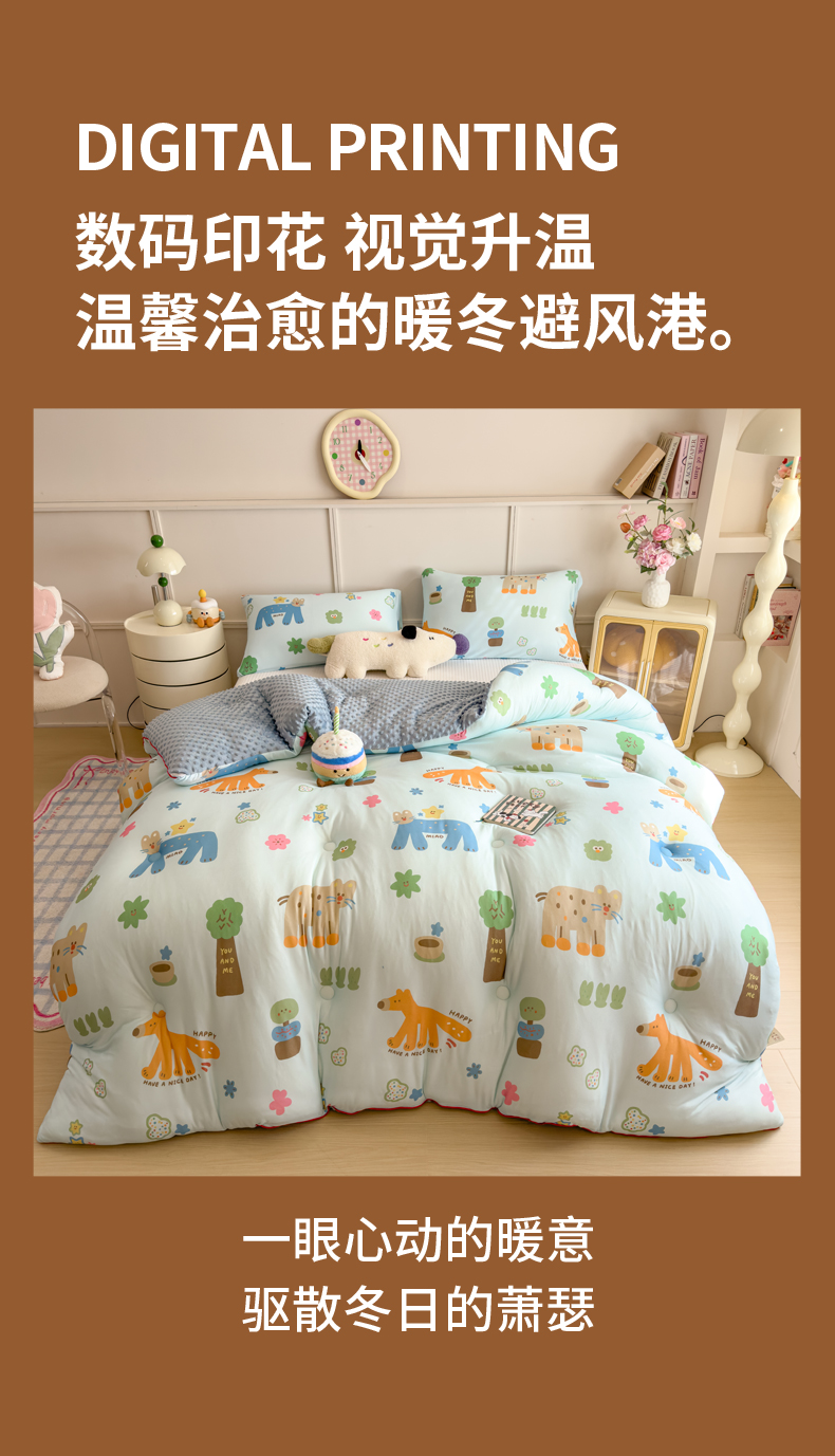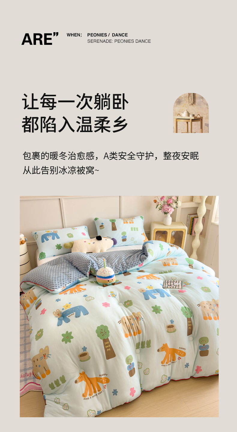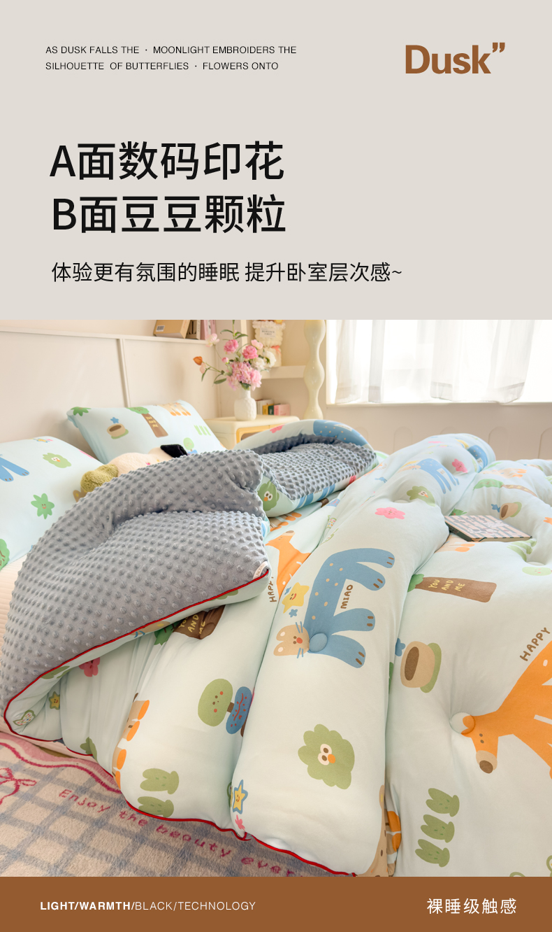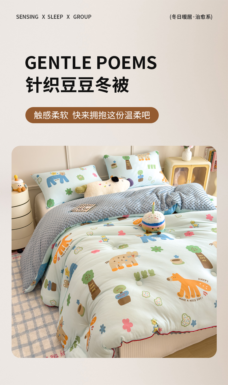 • 91家纺网 家纺一手货源 找家纺 米菲 2025新款针织豆豆冬被被子被芯 动物乐园