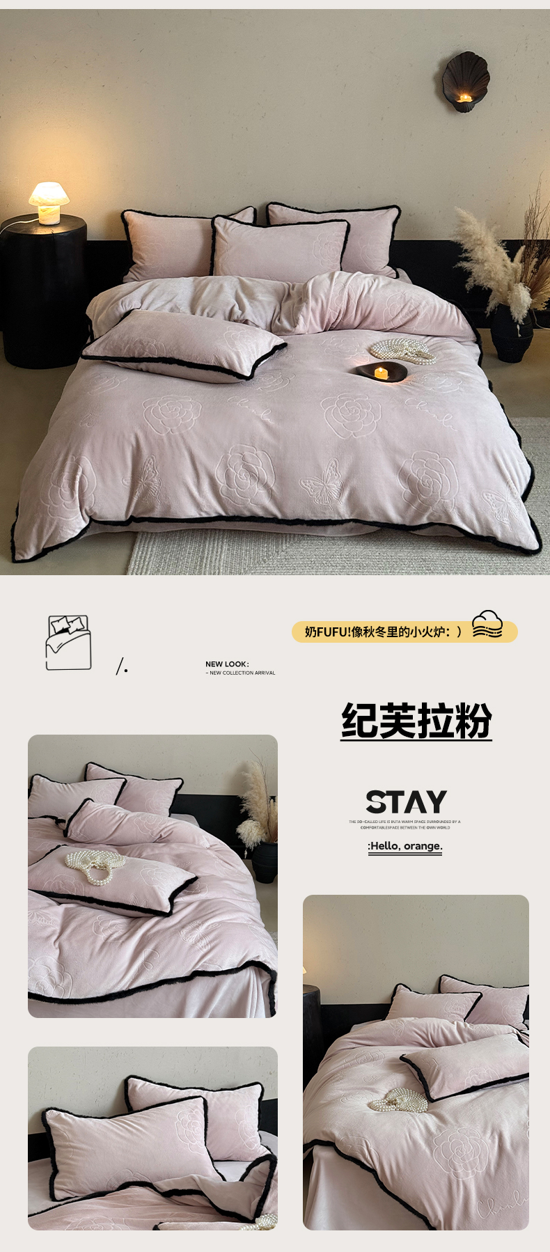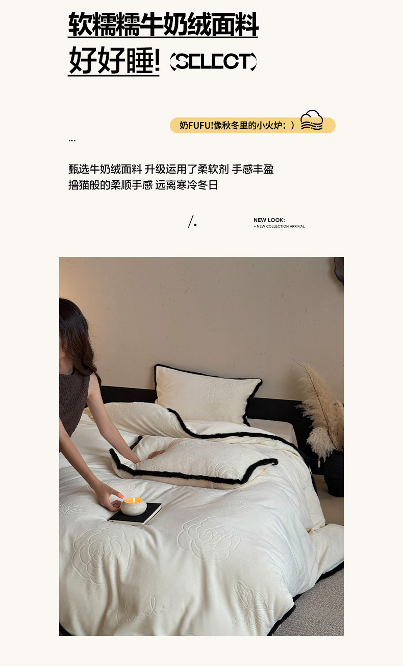 商品名称:三味舒屋 2025新款毛边雕花牛奶绒四件套-纪芙拉 纪芙拉-奶白