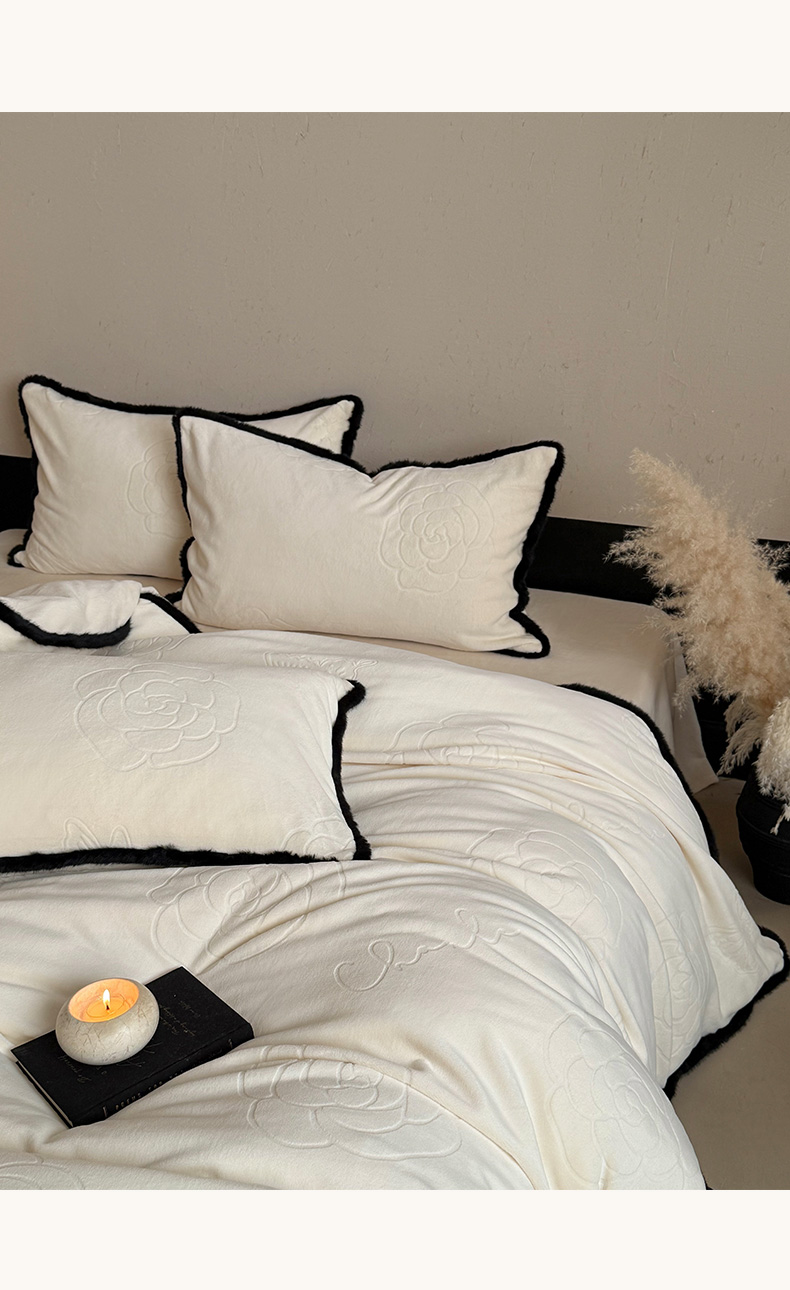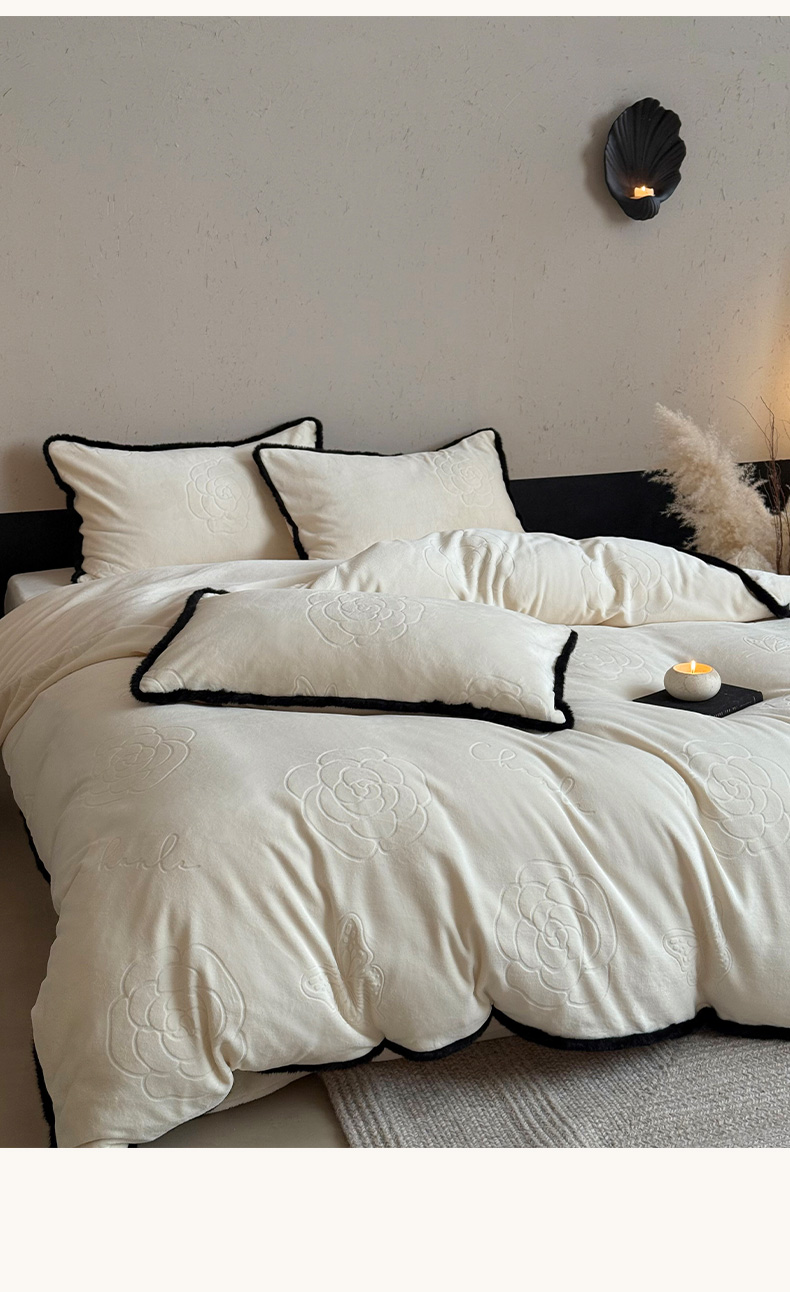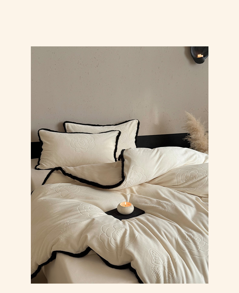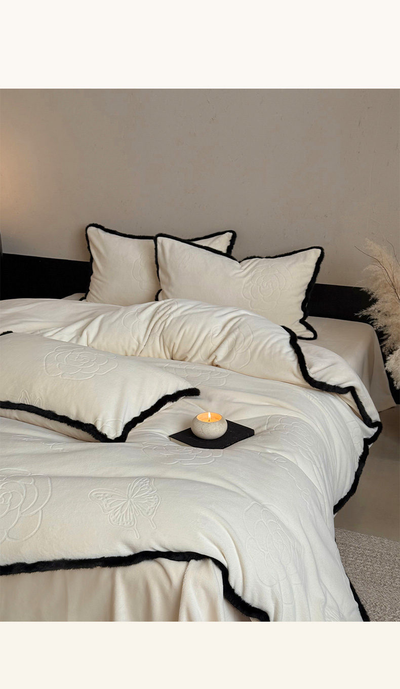 三味舒屋 2025新款毛边雕花牛奶绒四件套-纪芙拉 纪芙拉-奶白