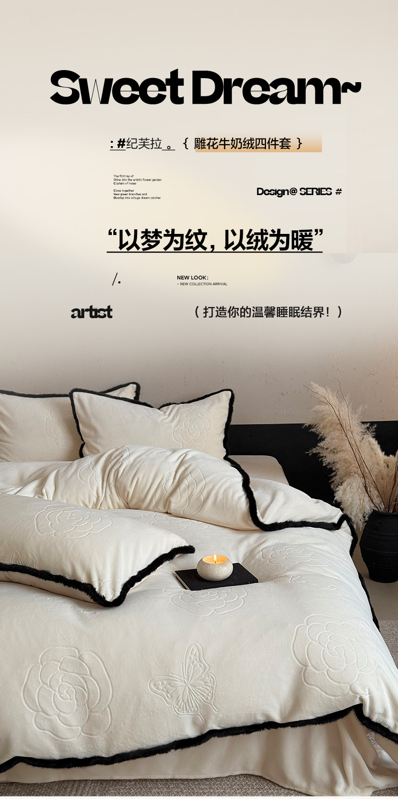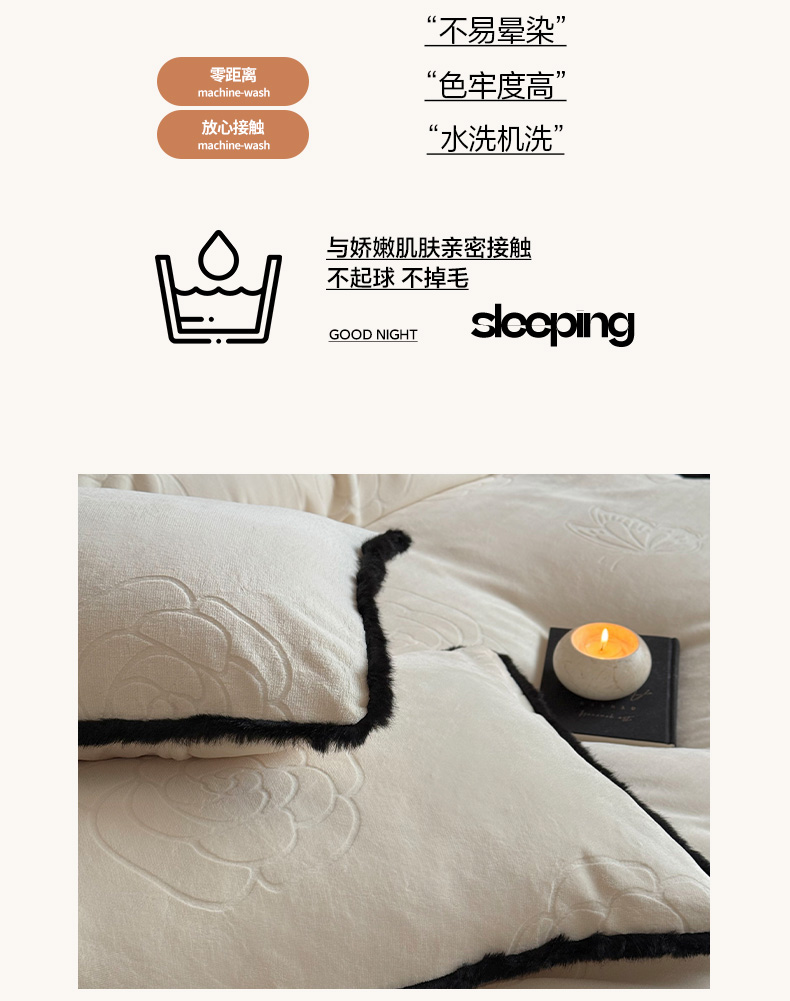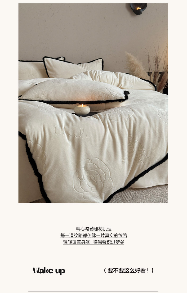 三味舒屋 2025新款毛边雕花牛奶绒四件套-纪芙拉 纪芙拉-奶白