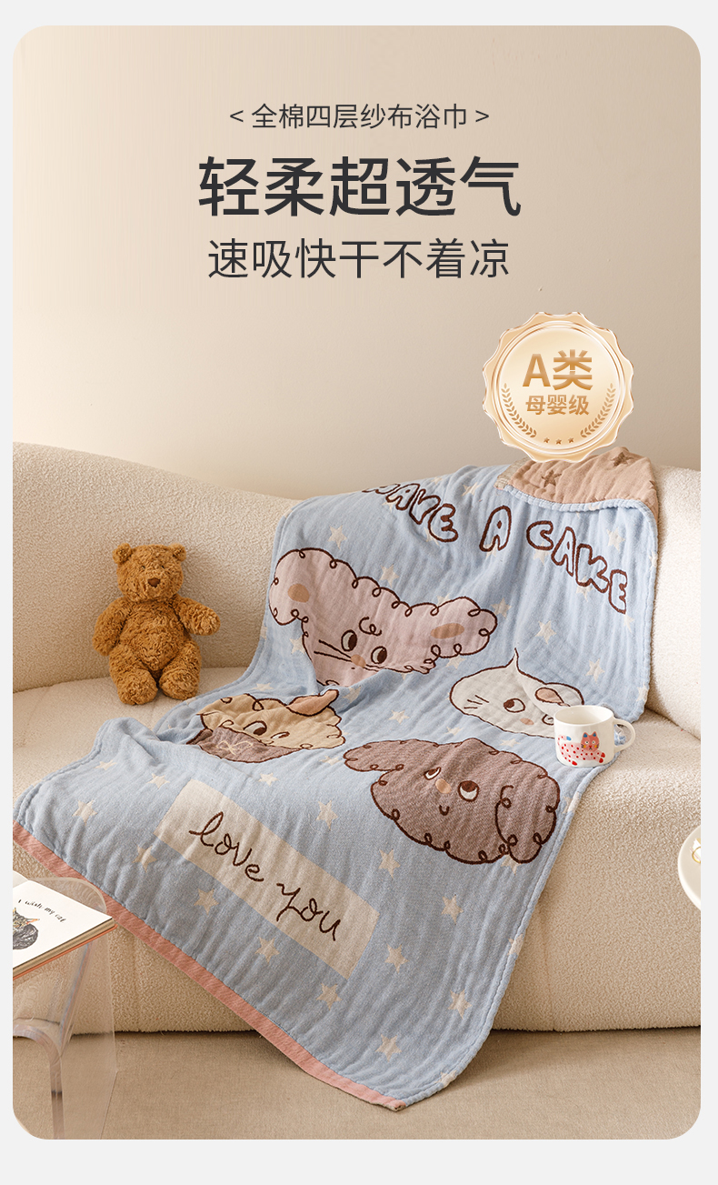 (总)麻依 2025新款四层全棉纱布毯盖毯毛巾被子被芯,白小兔,布偶熊,格子熊,考拉宝宝,咩咩羊,平安果,软萌小狗,甜点熊,甜甜圈,小猫崽,熊仔,总动员,KT日记