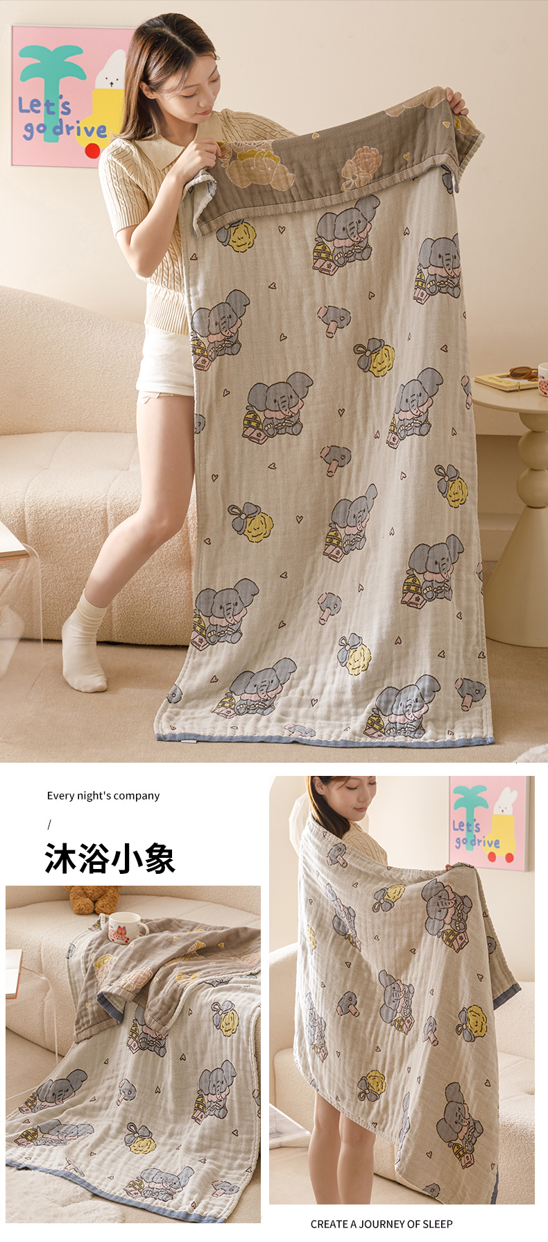 商品名称:麻依 2025新款全棉四层纱布浴巾披肩旅行毯 组合