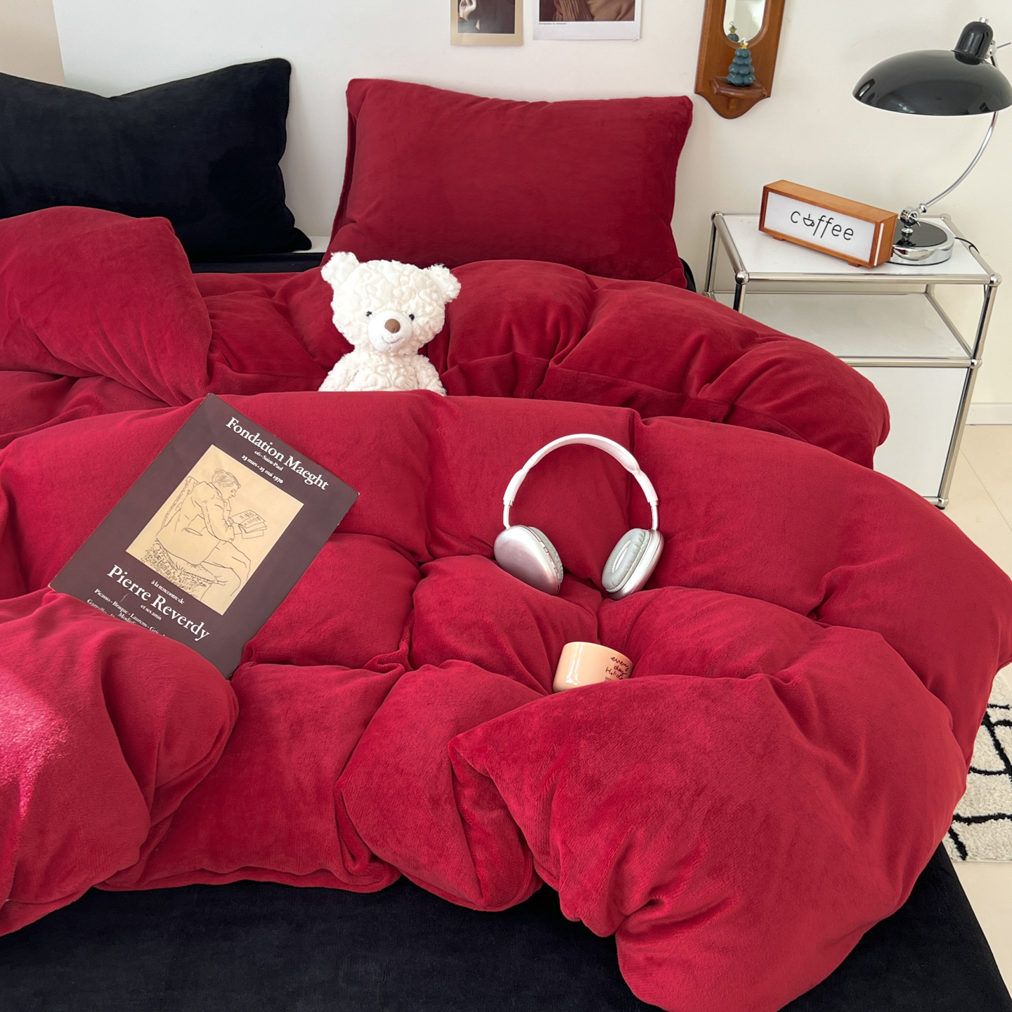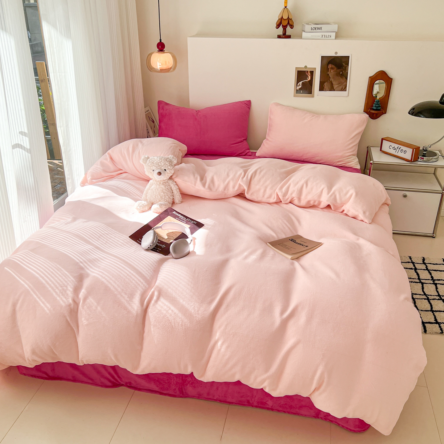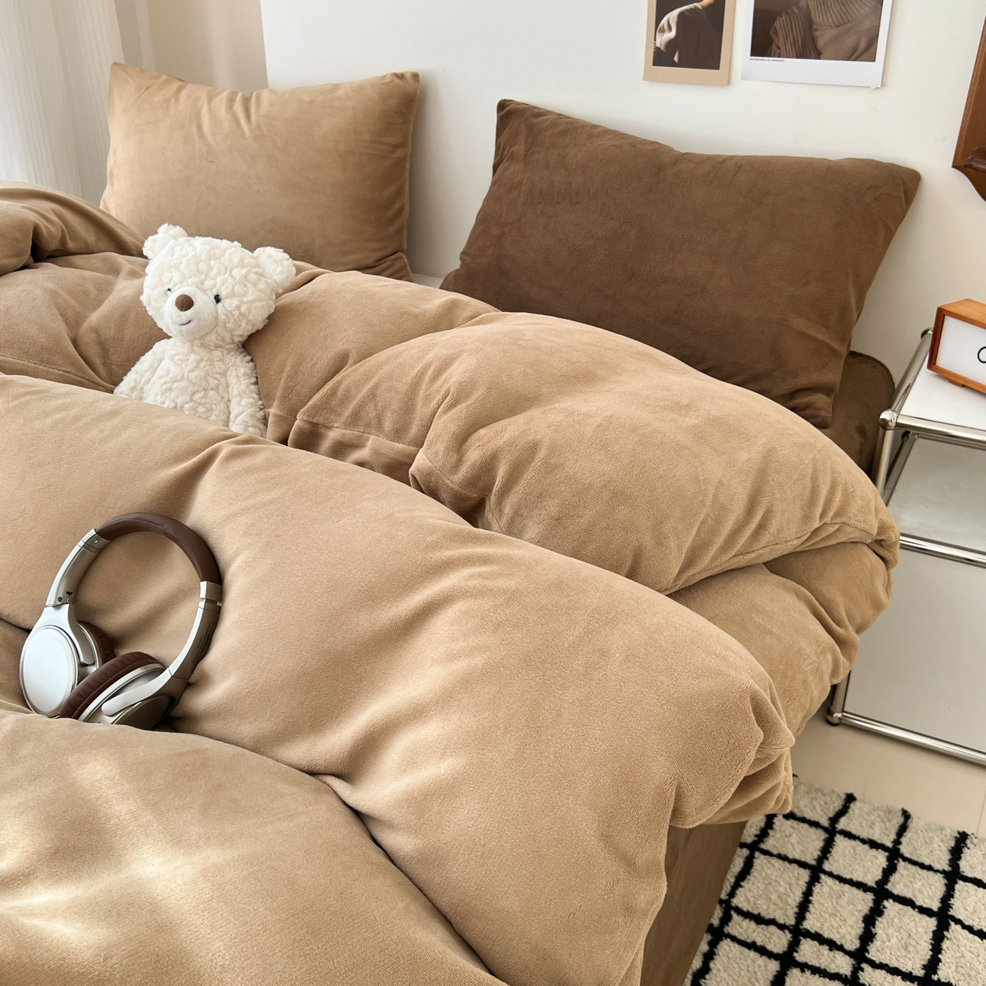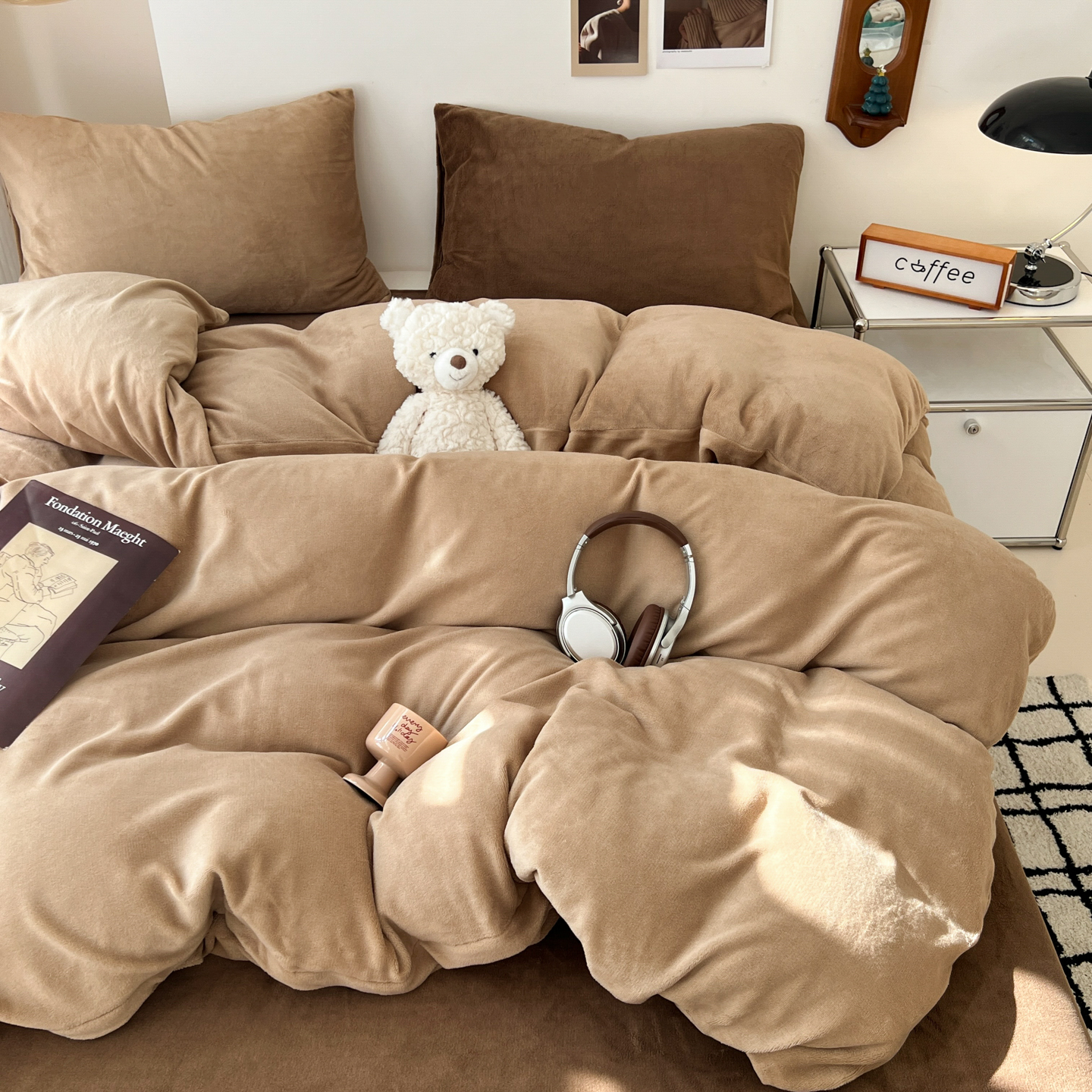 当前位置: 91家纺网 > 商品网购 > 床品套件 > 四件套 > 牛奶绒四件套 > 童颜 2025新款高克重拼色保暖牛奶绒四件套-场景二 浅棕+深棕