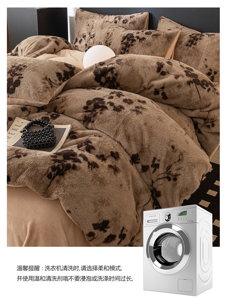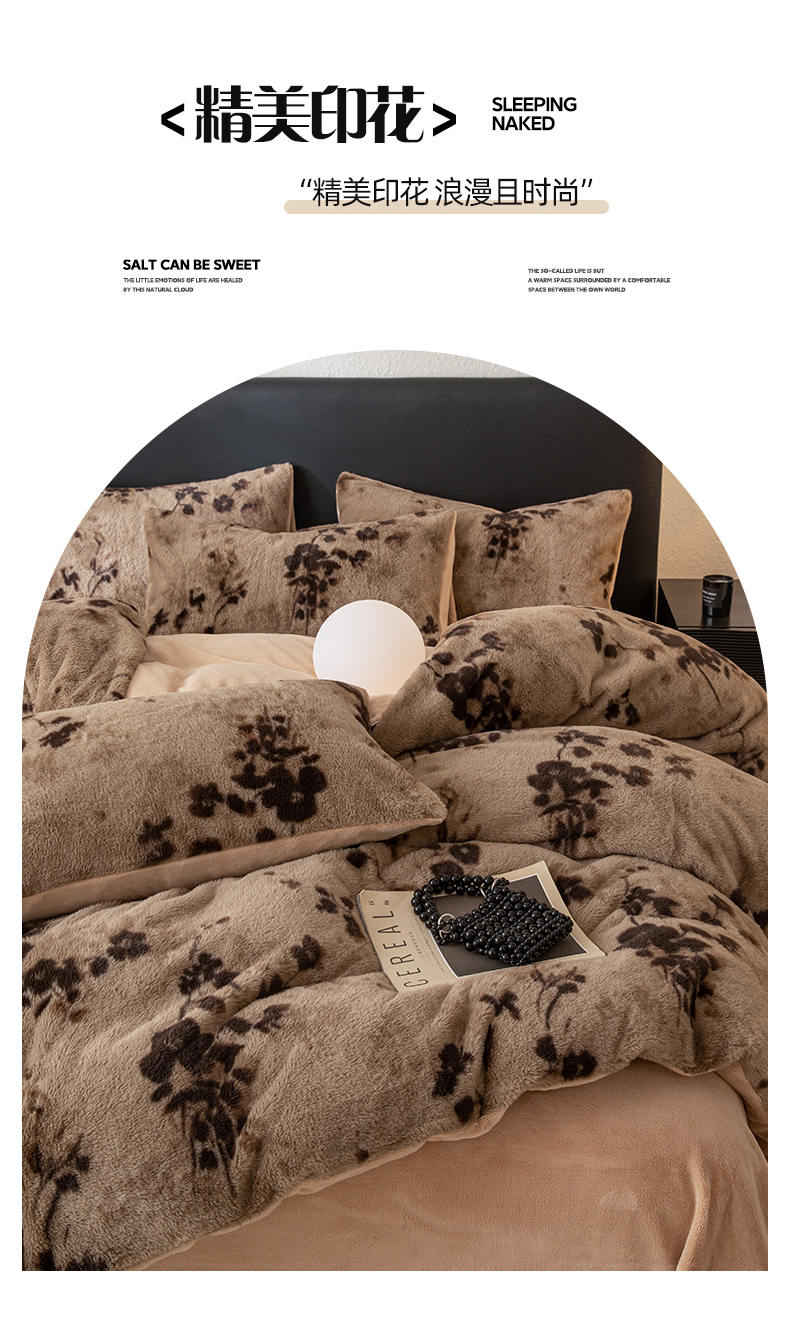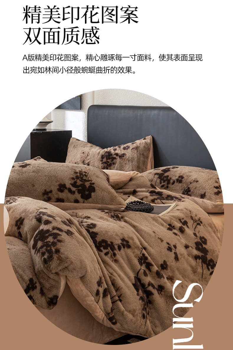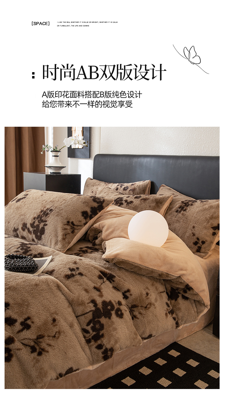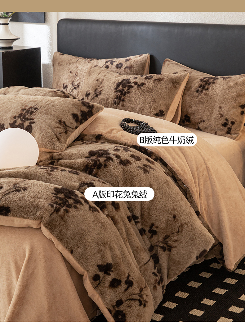 (总)简宜家居(朝初家纺) 2025新款印花兔兔绒+纯色牛奶绒双拼四件套,蝶影暖绒,米绒花絮,墨绒花-奶白,秋枝果绿,秋枝焦糖,一支秀-咖