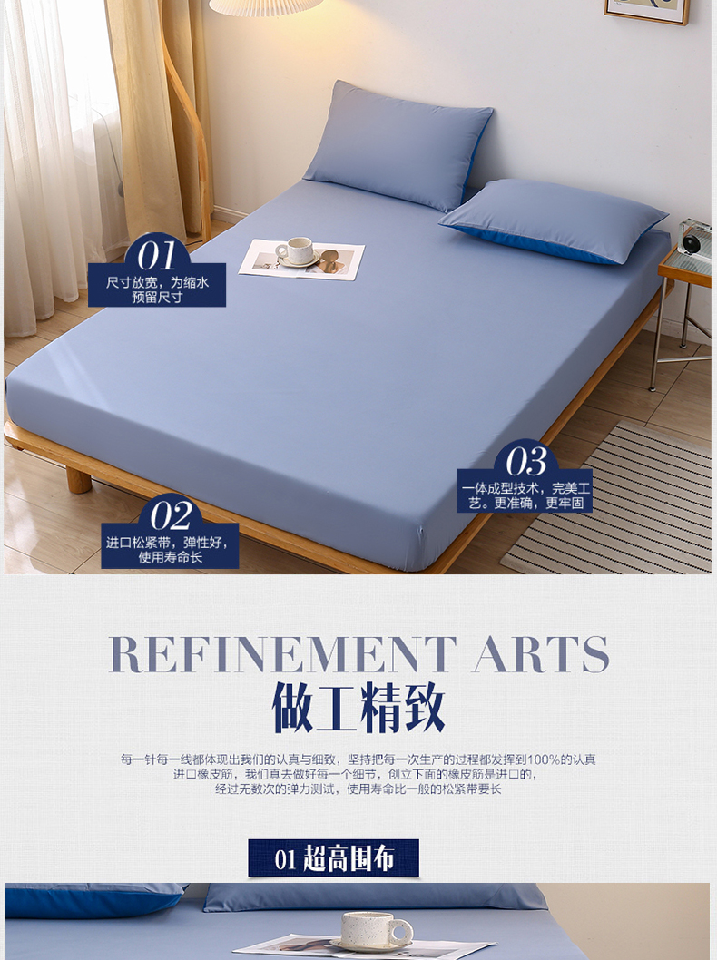 商品名称:啊雅家居 2025(外贸)新款简约单人床笠双人床笠水洗磨毛床笠跨境电商 浅蓝灰