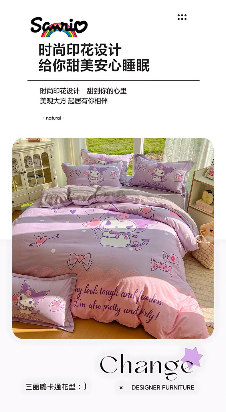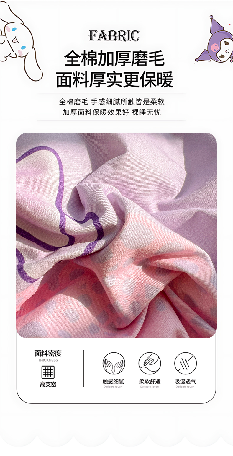 商品名称:浩诚 2025新款三丽鸥专版全棉磨毛纯棉四件套 爱心库洛米