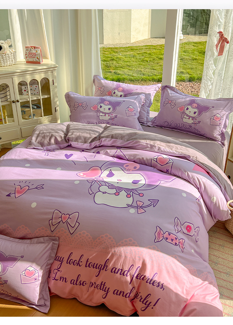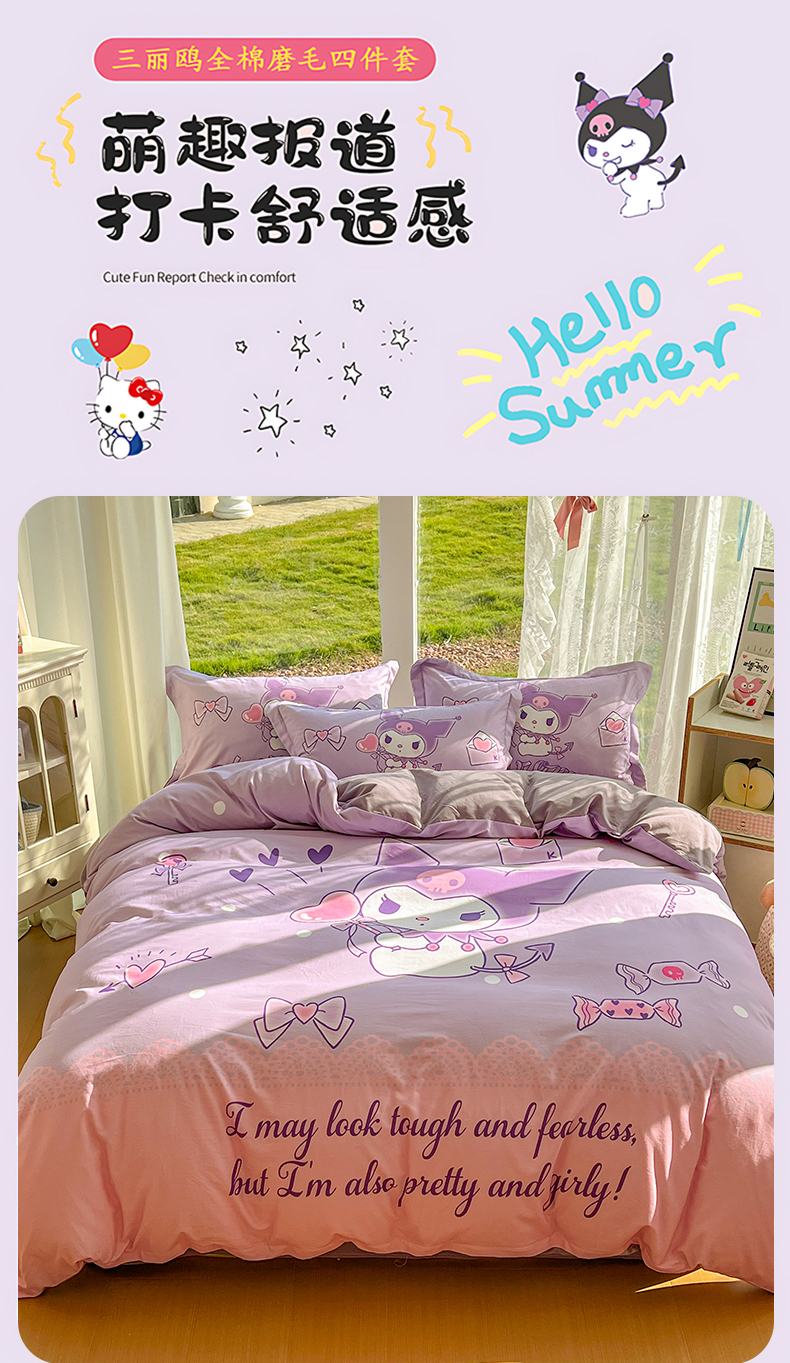 浩诚 2025新款三丽鸥专版全棉磨毛纯棉四件套 爱心库洛米