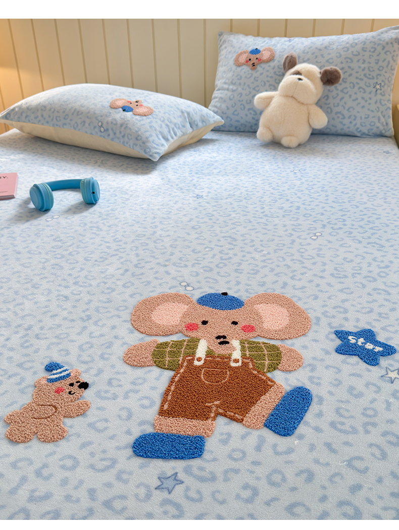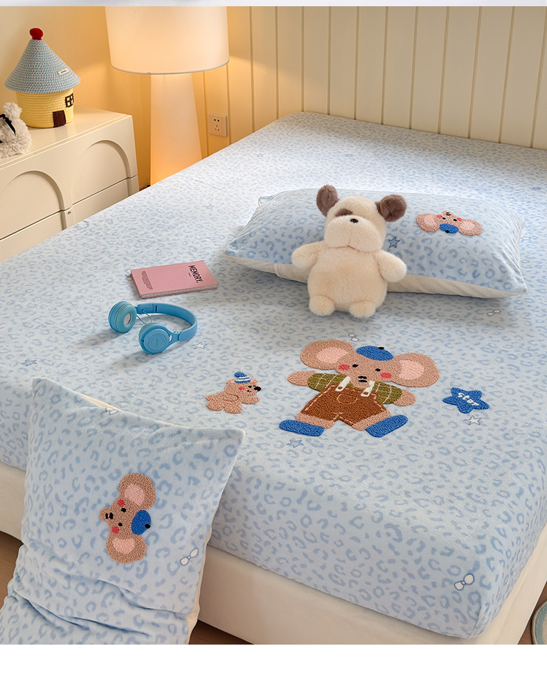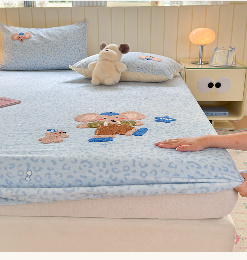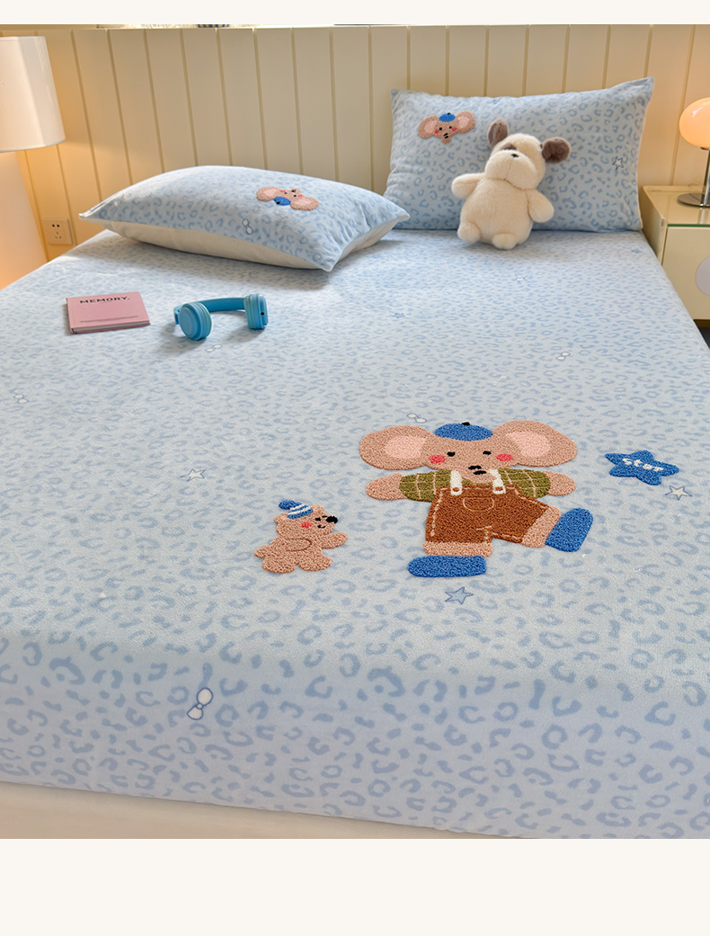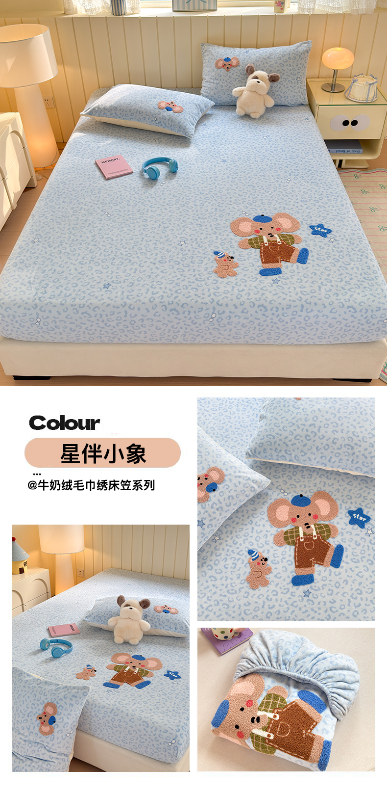寐居家纺 2025新款毛巾绣牛奶绒床笠 星伴小象