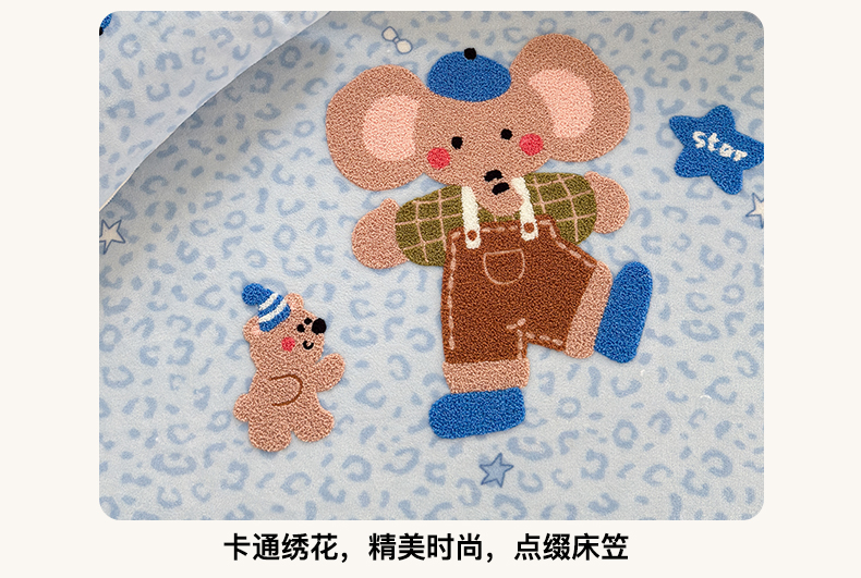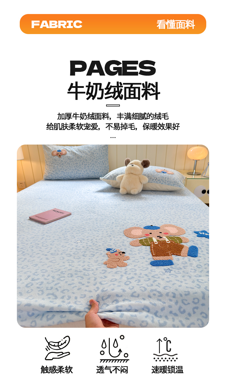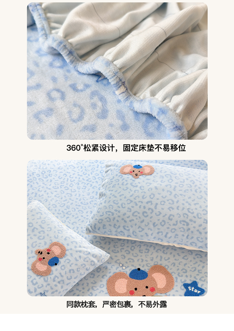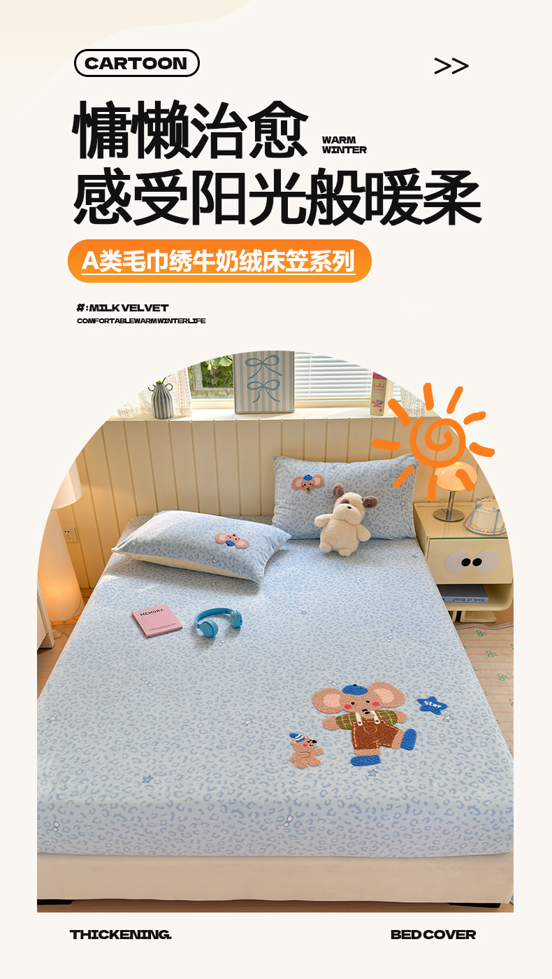 商品名称:寐居家纺 2025新款毛巾绣牛奶绒床笠 星伴小象