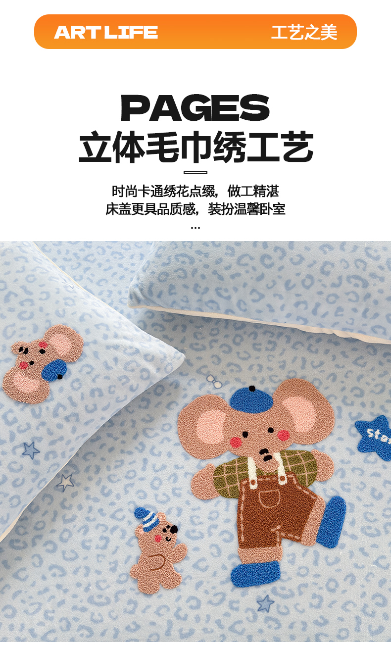 (总)寐居家纺 2025新款A类牛奶绒毛巾绣床盖,组合,格纹萌犬,红果果,萌兔有约,年年有鱼,甜心小骑,星伴小象