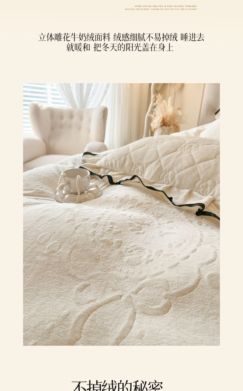(总)瑞宝 2025新款雕花牛奶绒花边夹棉床盖四件套-云梦,云梦-米白,云梦-靛蓝,云梦-浅咖,云梦-清新绿,云梦-柔粉,云梦-雾紫