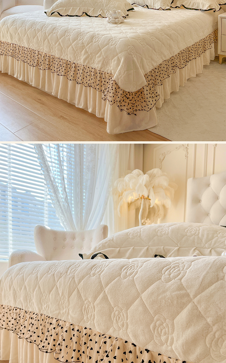 (总)瑞宝 2025新款雕花牛奶绒夹棉床裙三件套-花有约,花有约-粉玉,花有约-青柠绿,花有约-奶油白,花有约-蔚蓝,花有约-卡其,花有约-梦幻紫