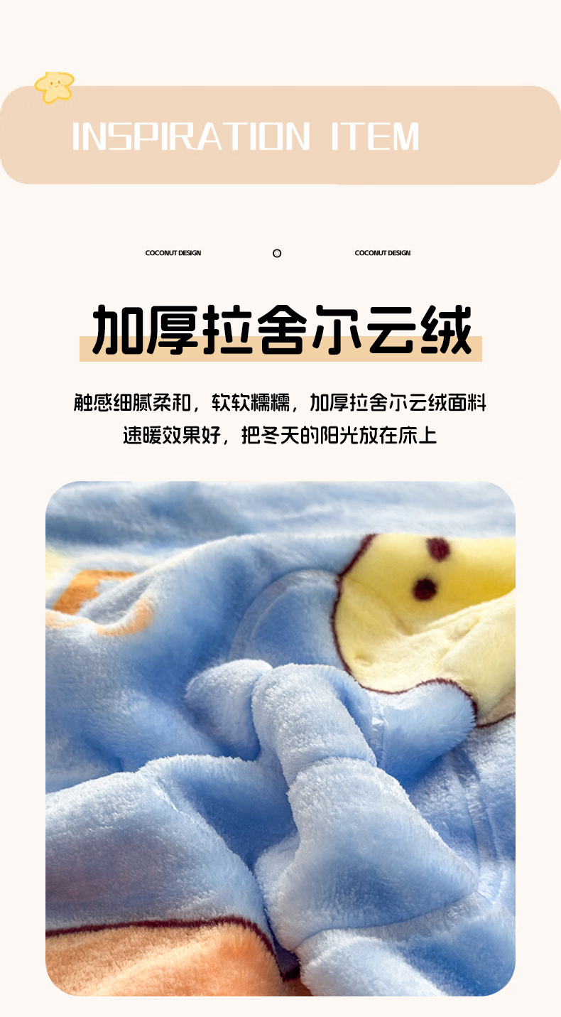 商品名称:悦织湾家纺 2025新款拉舍尔双层云绒童毯毯子卡通休闲沙发盖毯毛毯儿童婴幼儿宝宝小毯子 童年伙伴17#蓝