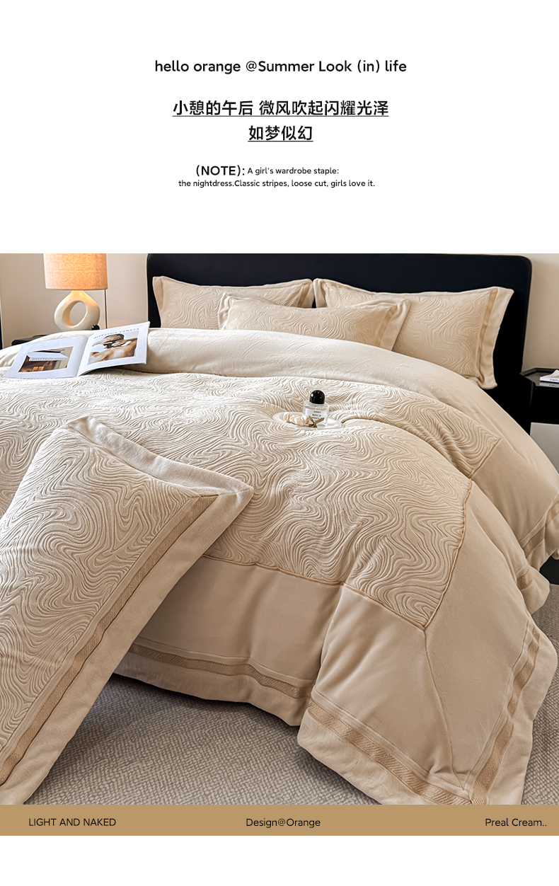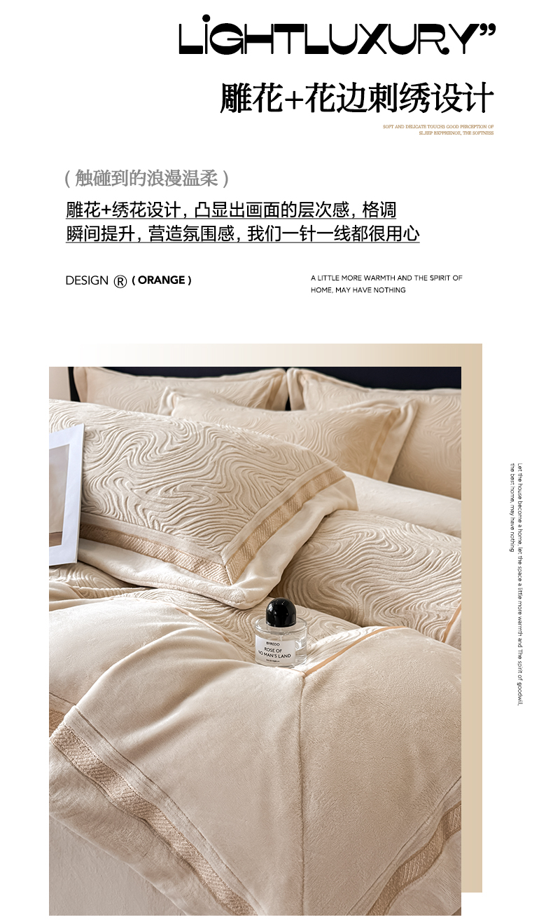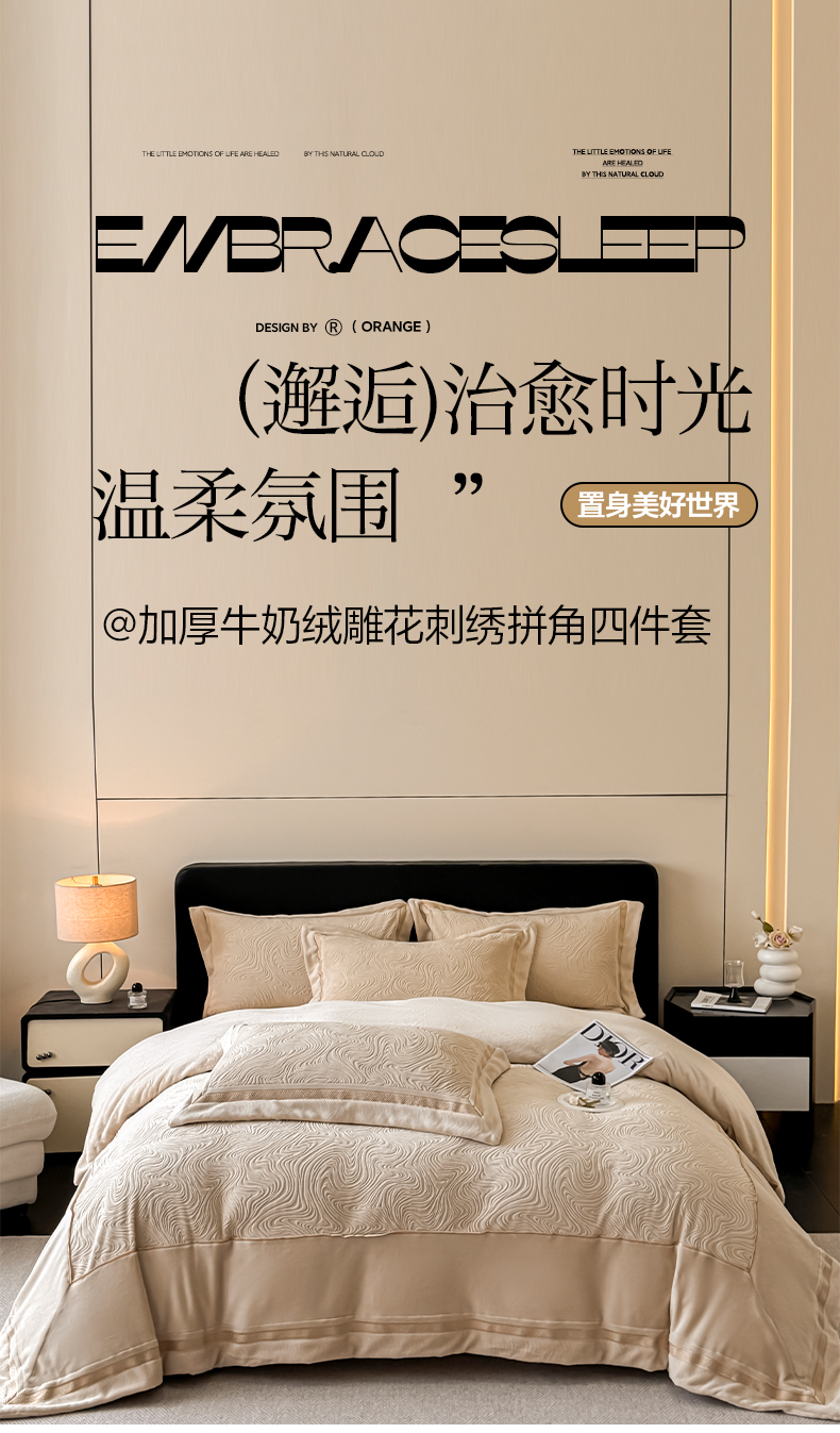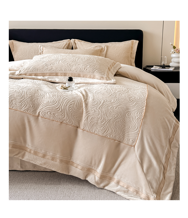 博纳家纺 2025新款加厚牛奶绒雕花刺绣拼角四件套-海韵 控价劵后248(严格按控价来) 香槟