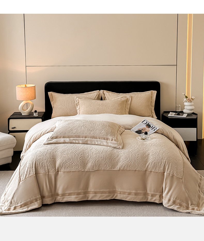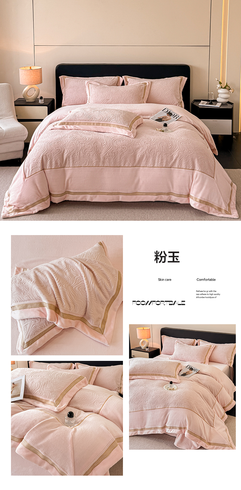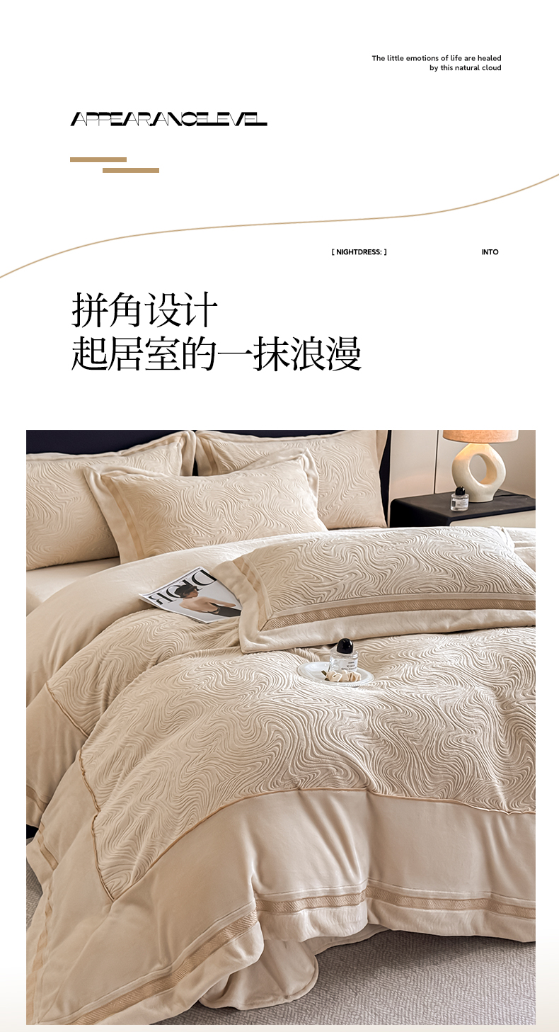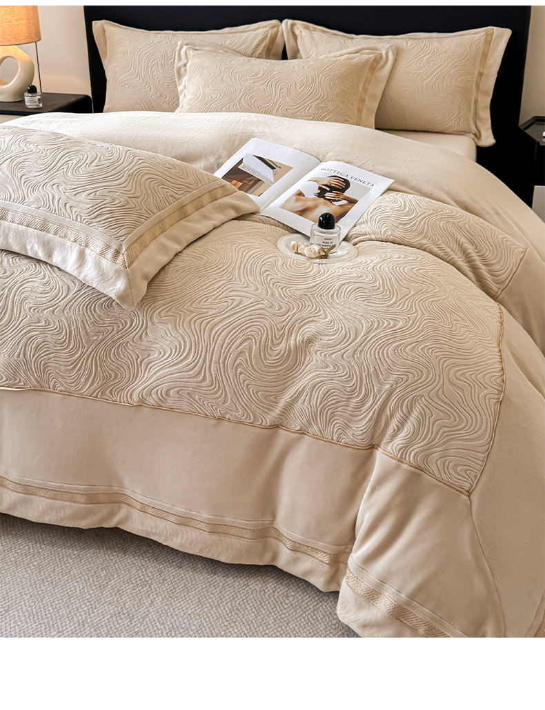 博纳家纺 2025新款加厚牛奶绒雕花刺绣拼角四件套-海韵 控价劵后248(严格按控价来) 香槟