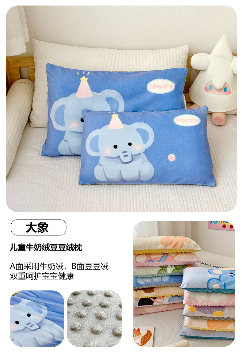 (总)萌宝家纺 2025新款儿童牛奶绒豆豆单品枕套,大象,粉色小狗,灰企鹅,考拉,小狗,小恐龙,小企鹅,小狮子,小兔子,小象,小熊,小猪,组合图仅供参考不可下单