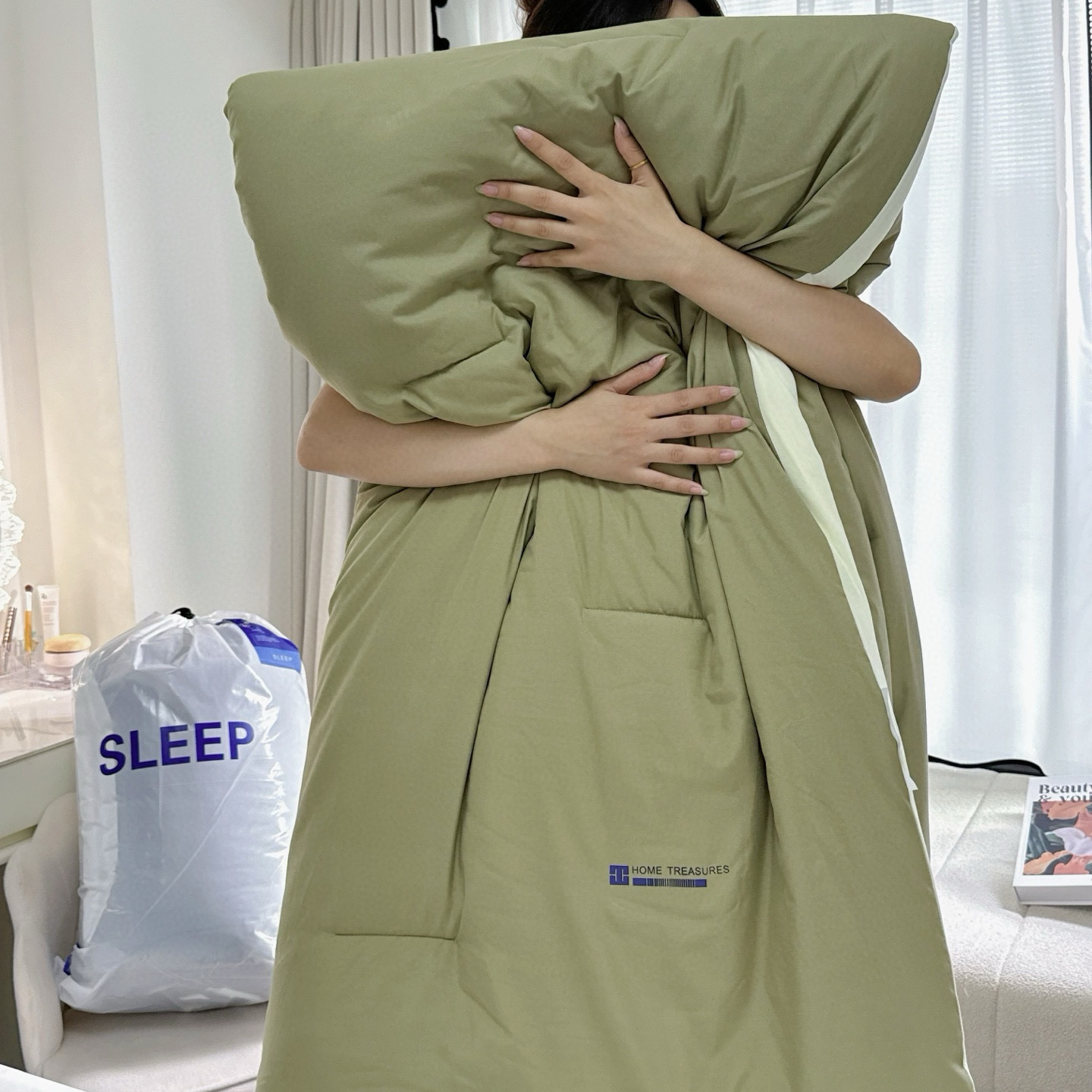 (总)兜米家居 2025新款某朵酒店同款秋冬保暖深睡控温被芯一体绗缝(不可拆卸),军绿色,气质紫,深邃蓝,天晴蓝,温馨粉