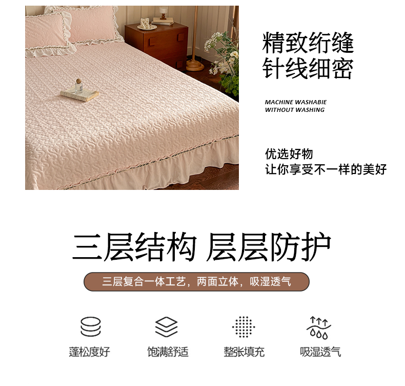 (总)花香四季家纺 2025新款夹棉绗缝床裙单件三件套法式四件套套件蕾丝公主风,灰色,绿色,米色,玉色,紫色