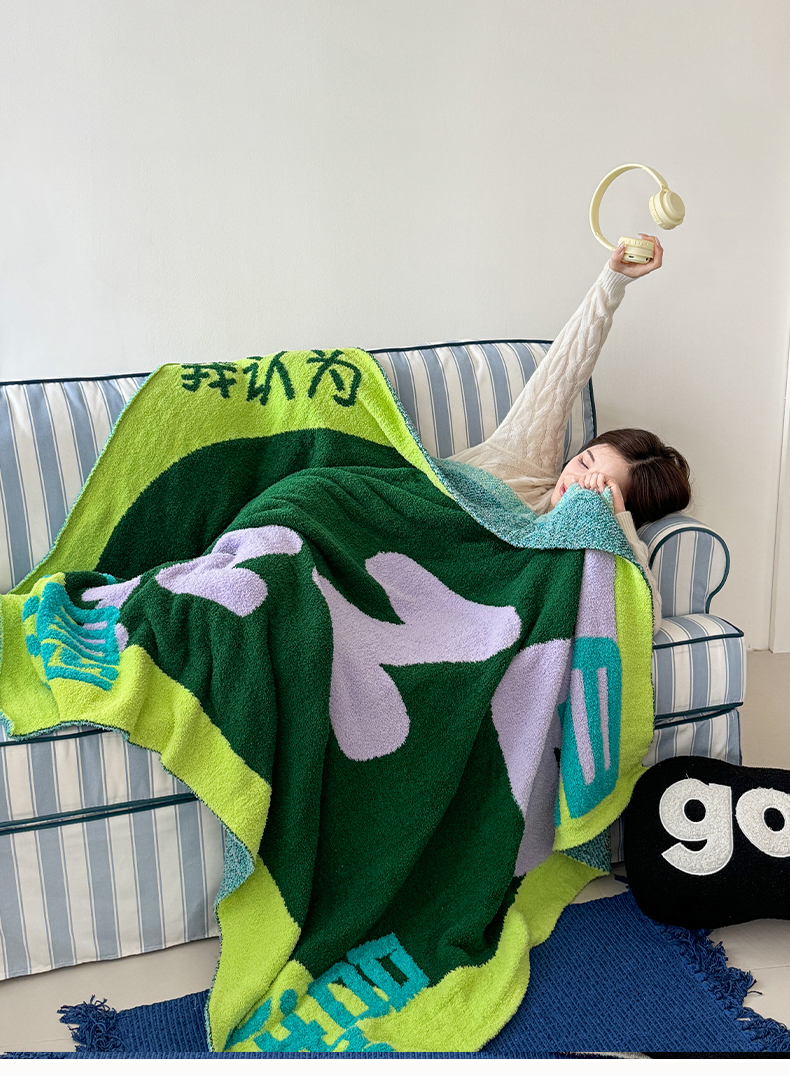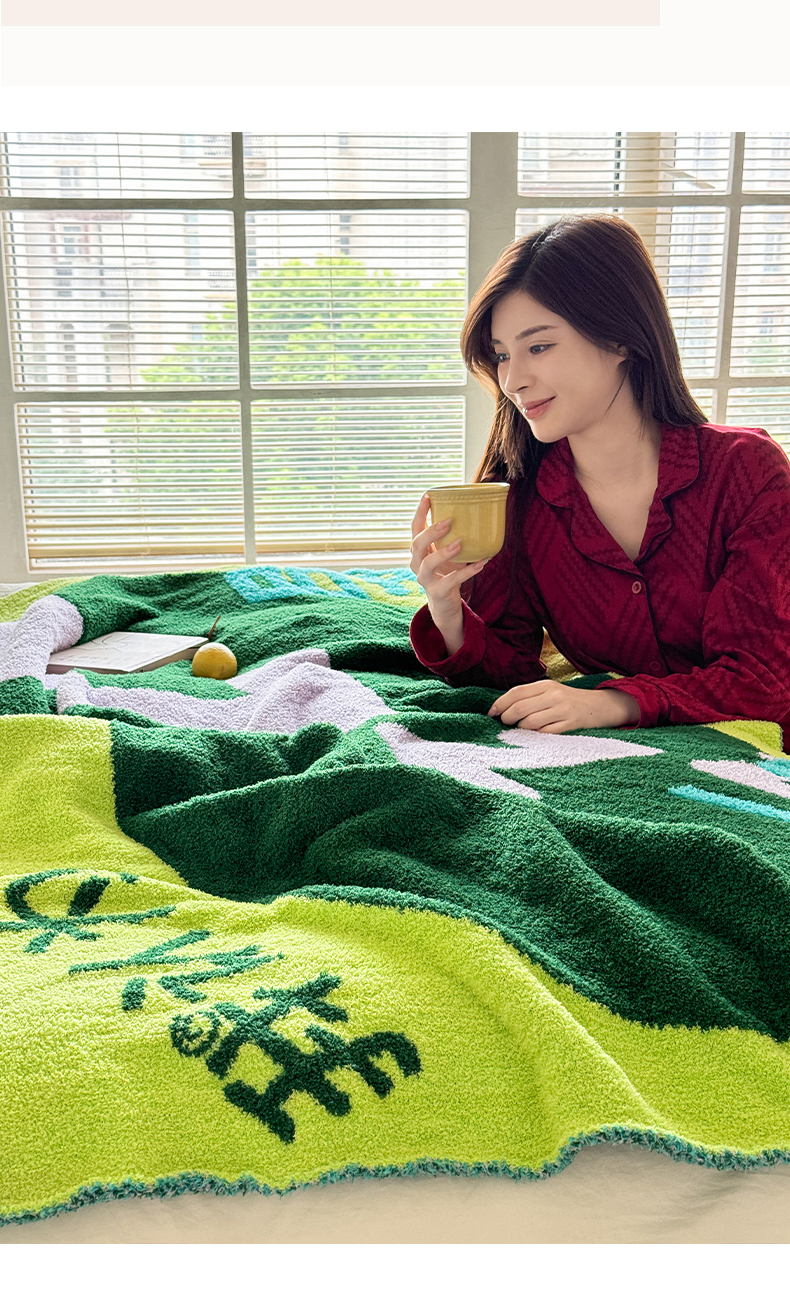丹本家纺 2025新款设计师原创多功能针织半边绒毛毯午休毯盖毯加厚毯子 休息一下