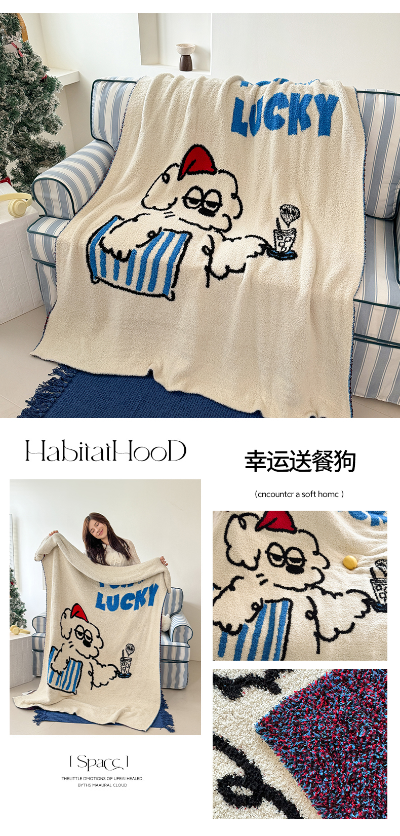 (总)丹本家纺 2025新款设计师原创多功能针织半边绒毛毯午休毯盖毯加厚毯子,快乐狗,蓝条绅士狗,你好猫先生,圣诞快乐,幸运送餐狗,休息一下