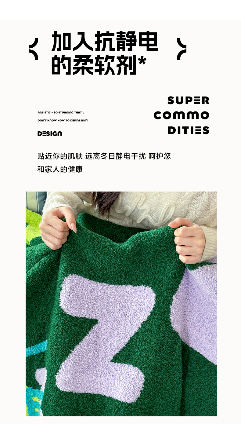 商品名称:丹本家纺 2025新款设计师原创多功能针织半边绒毛毯午休毯盖毯加厚毯子 休息一下