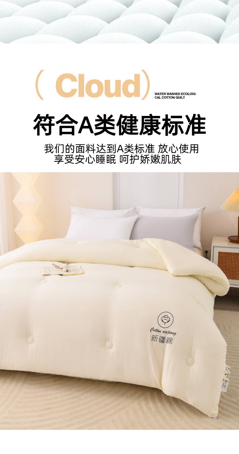 寝美资家居 2025新疆水冼棉纯色棉花被被子被芯 棉花-白