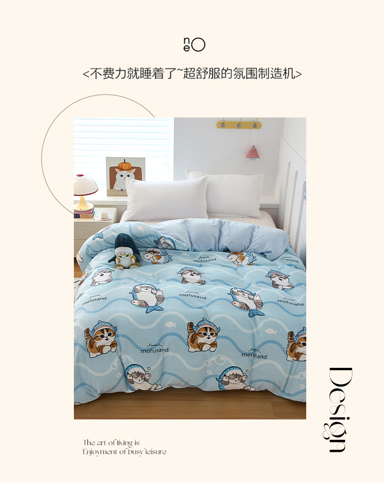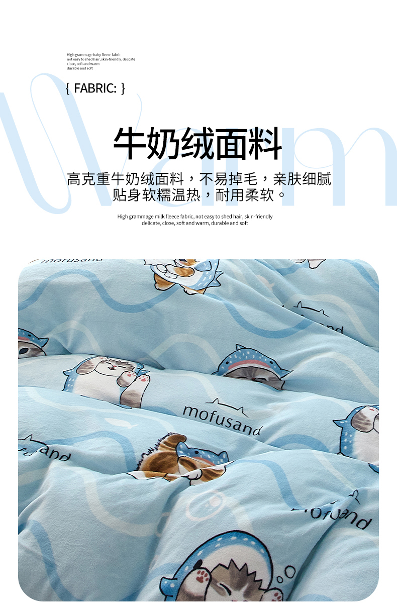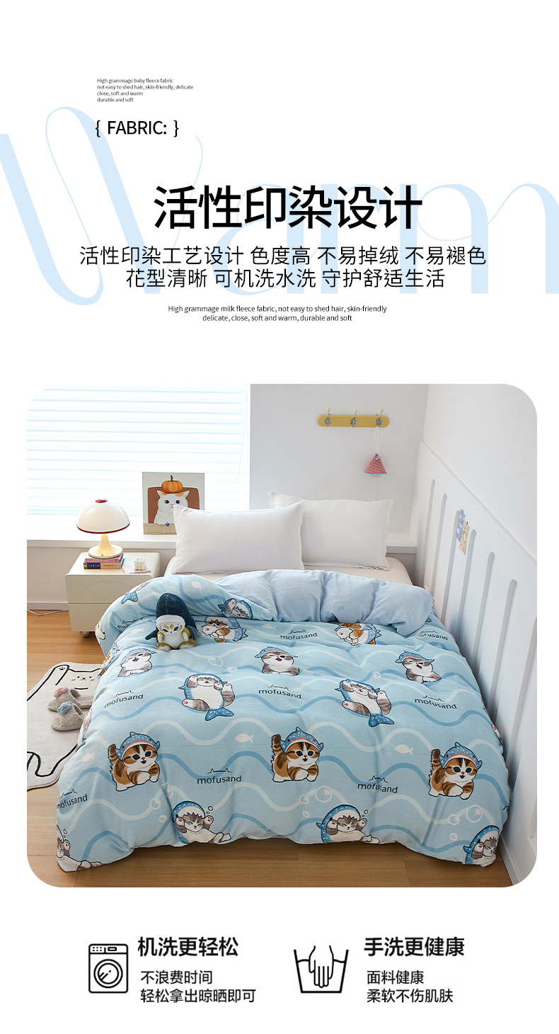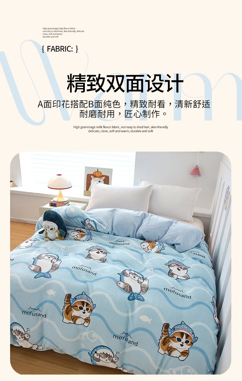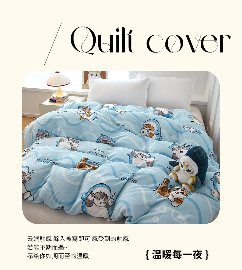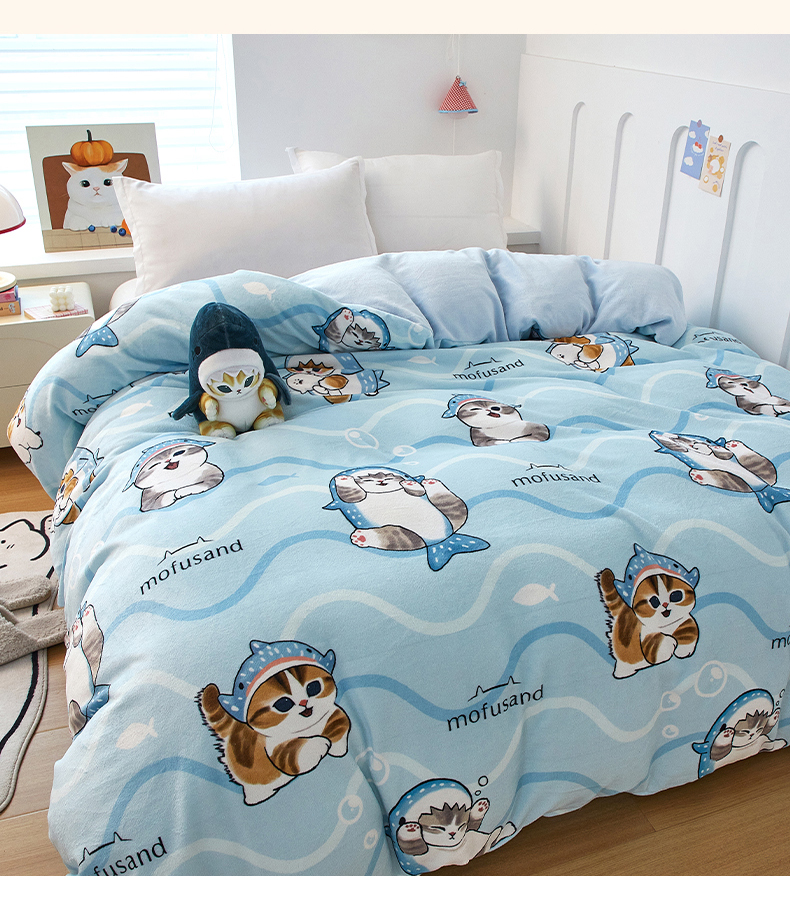商品名称:蘭菲家纺 2025新款高克重牛奶绒正版鲨鱼猫系列单品被套 珊迪出海-猫福