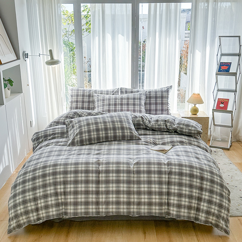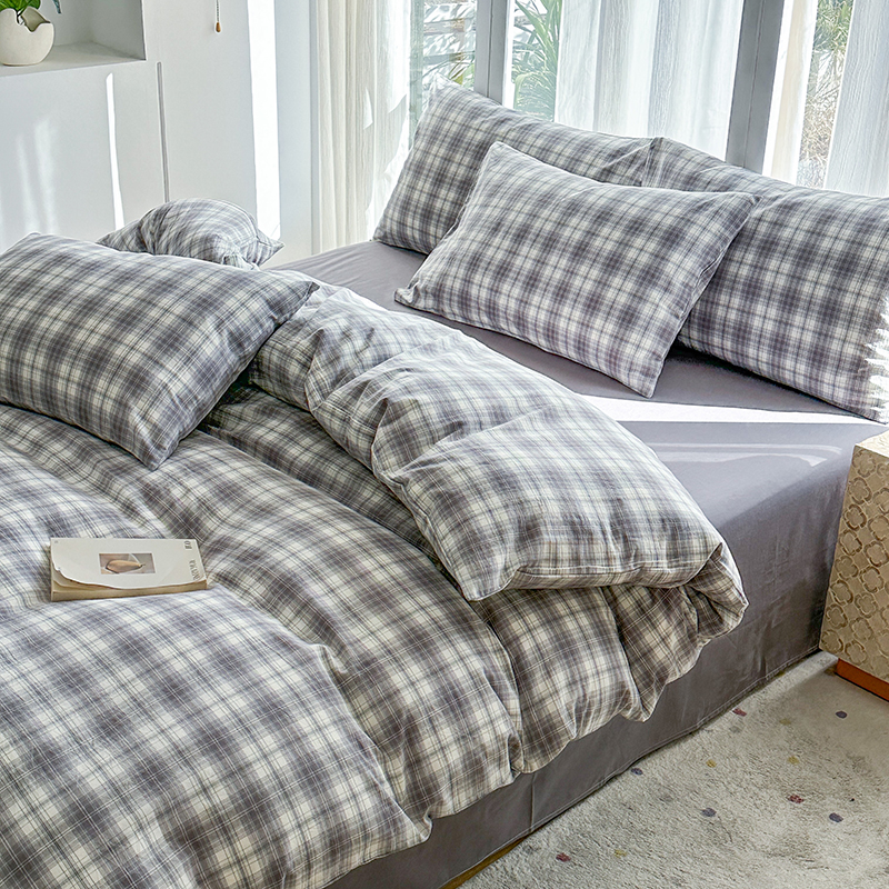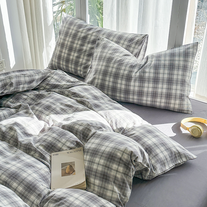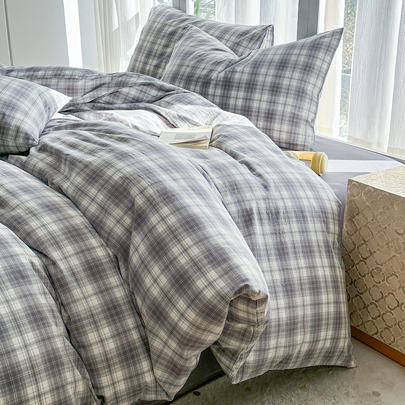 当前位置: 91家纺网 > 商品网购 > 床品套件 > 四件套 > 尚品本色2025年新款简约风全棉水洗棉格子条纹系列四件套光年灰