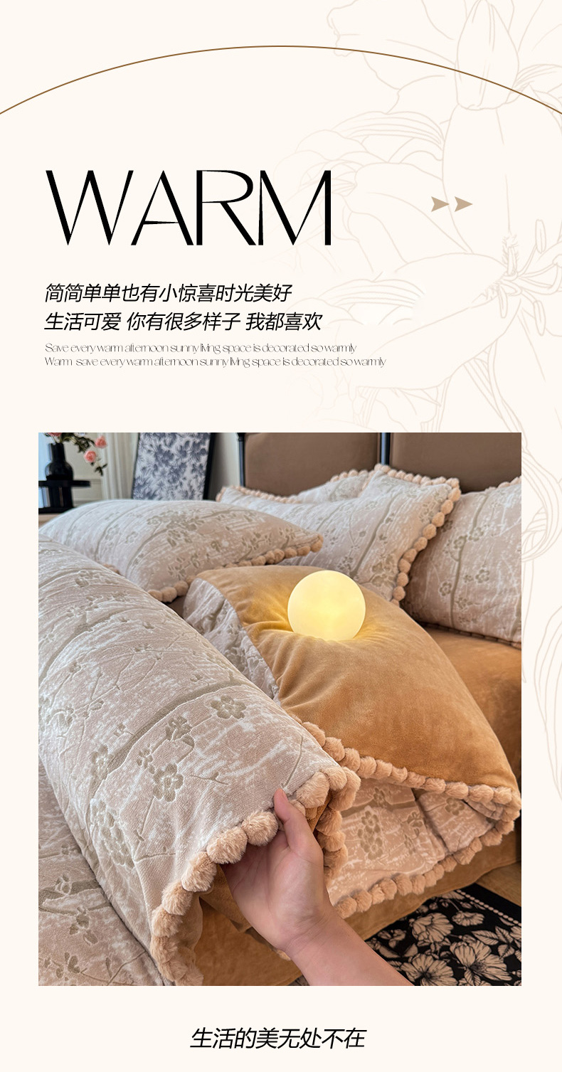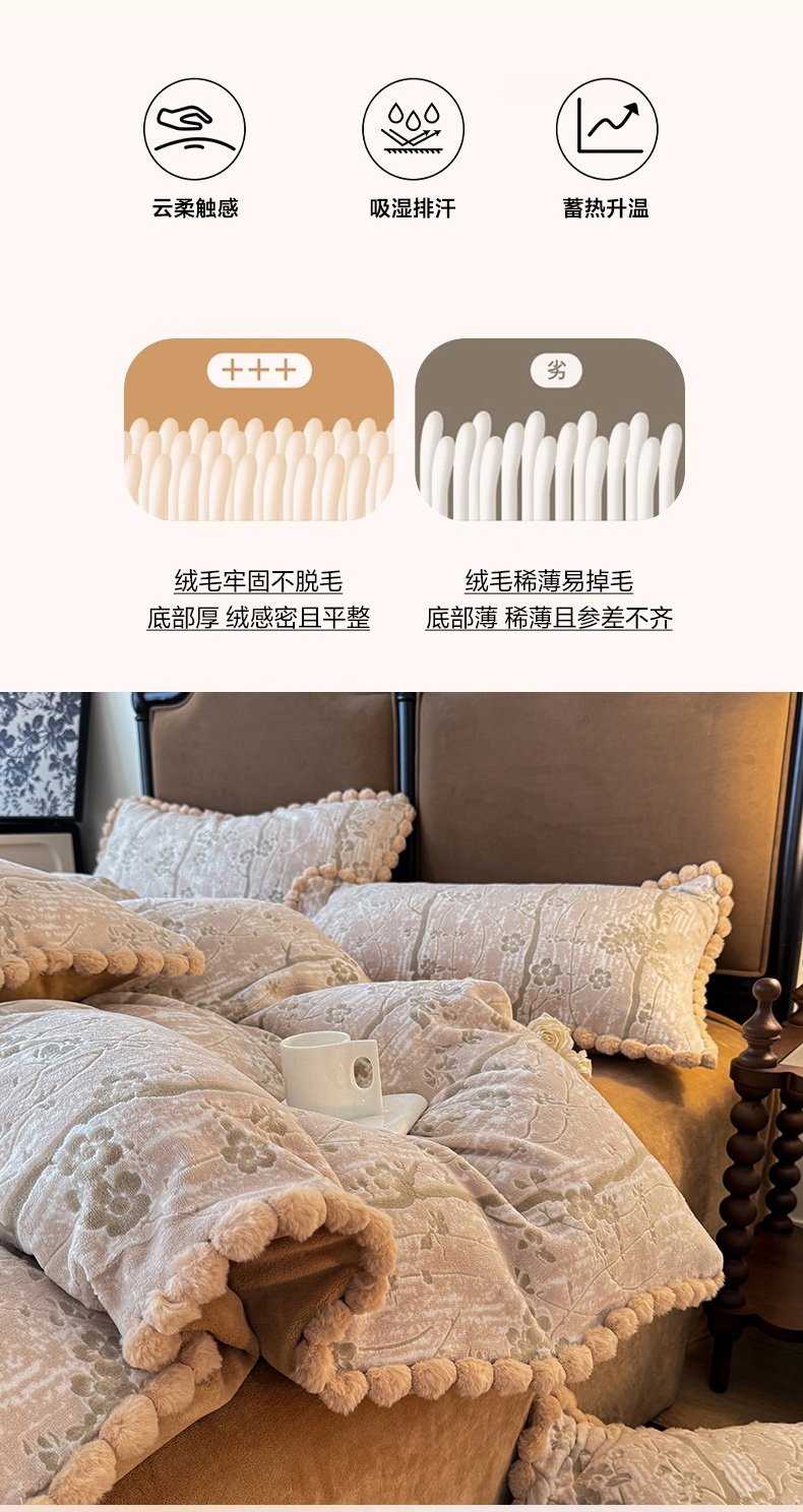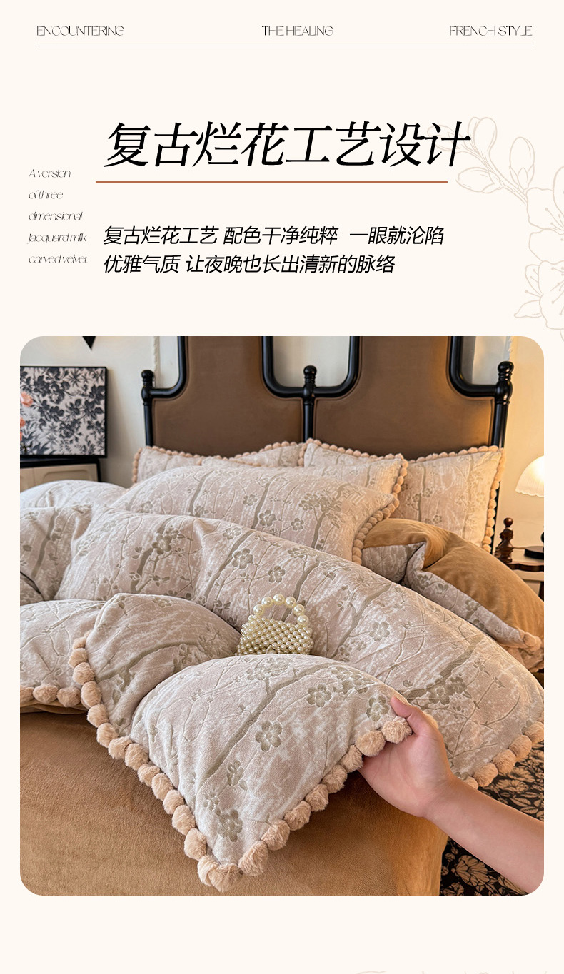 商品名称:菲儿家纺 2025新款加厚保暖烂花法式牛奶绒四件套 枫丹白露