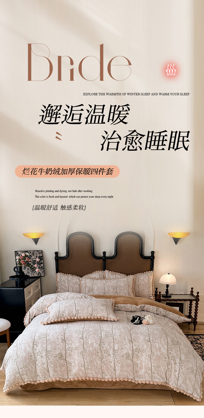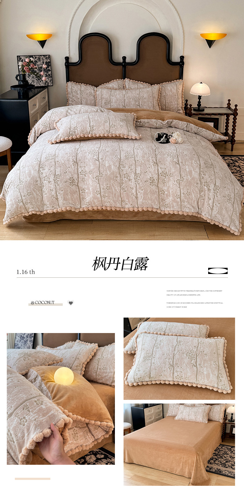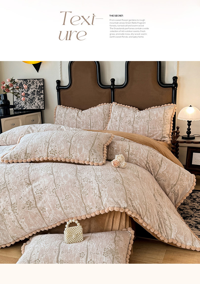 商品名称:菲儿家纺 2025新款加厚保暖烂花法式牛奶绒四件套 枫丹白露