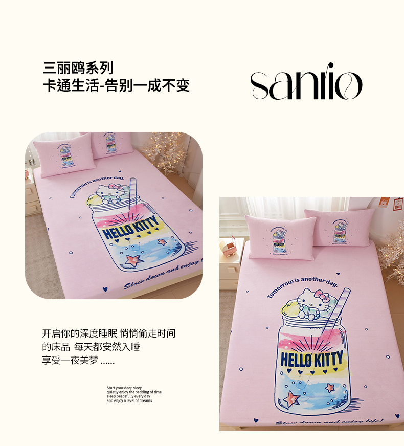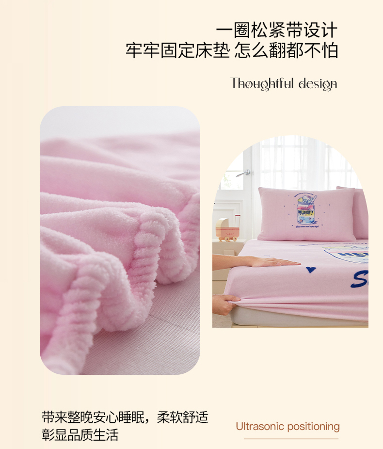 商品名称:蘭菲家纺 2025新款三丽欧牛奶绒套件系列单品床笠 大杯奶茶-KT