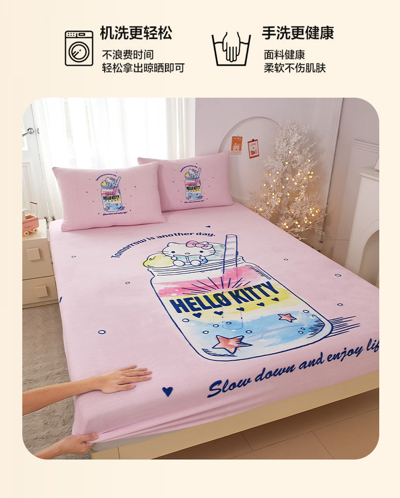 蘭菲家纺 2025新款三丽欧牛奶绒套件系列单品床笠 大杯奶茶-KT