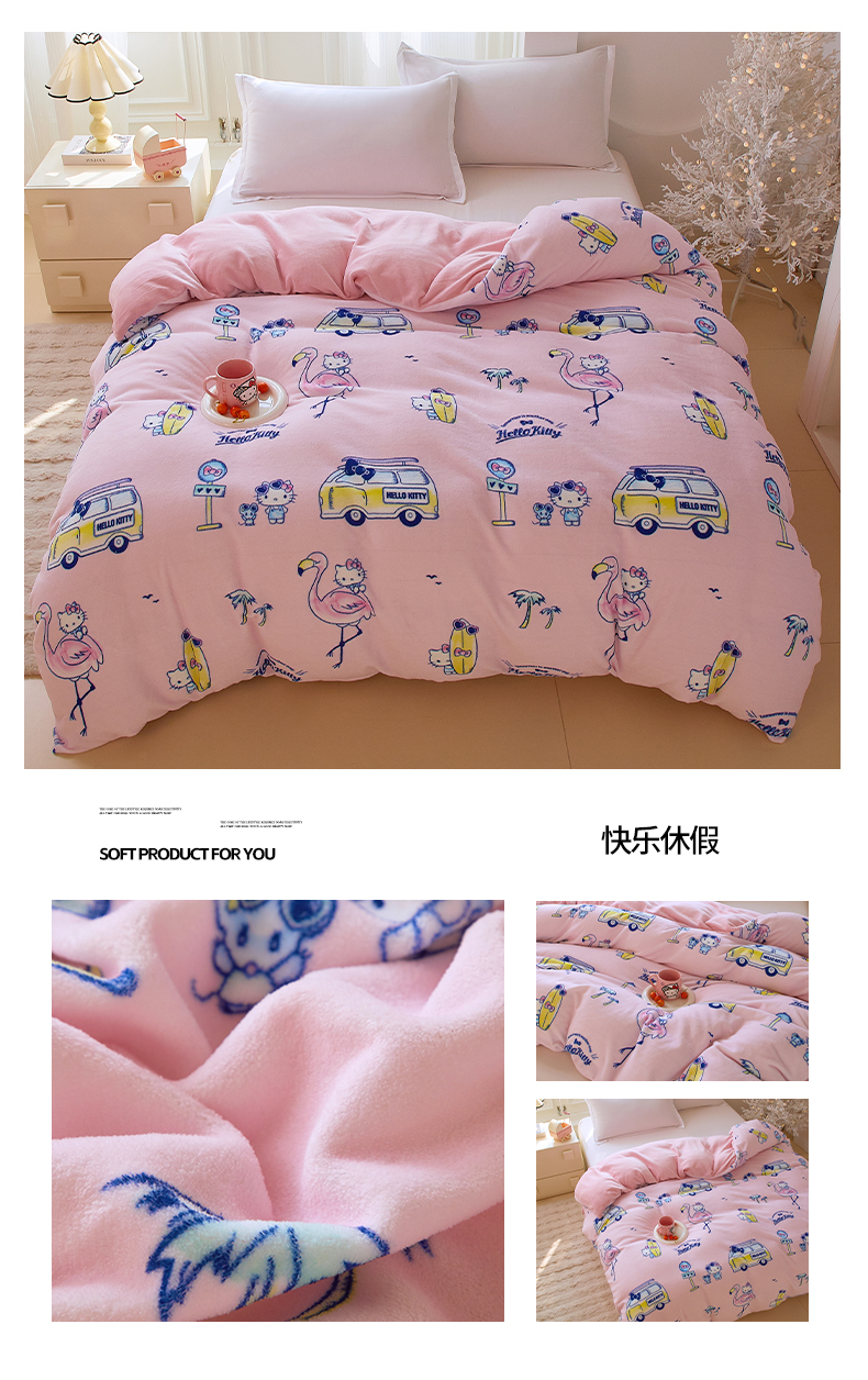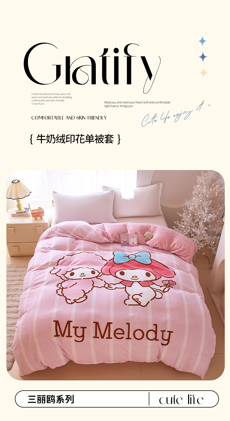 蘭菲家纺 2025新款三丽欧牛奶绒套件系列单品被套 美乐比爱